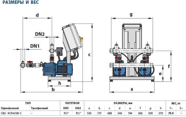 Такая работа насосов, необходимая для удовлетворения нужд потребителей в воде, приводит к заметному снижению потребления электроэнергии. Электронная схема в блоке управления контролирует попеременную работу насосов.