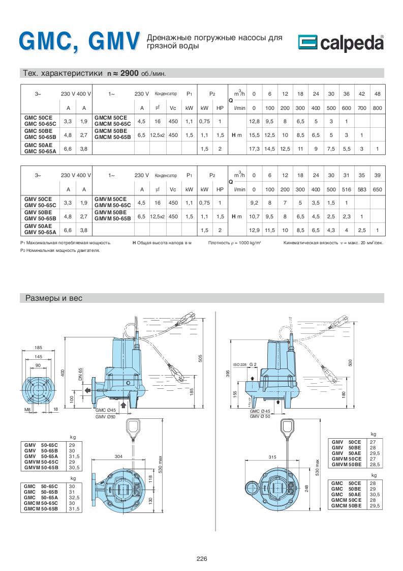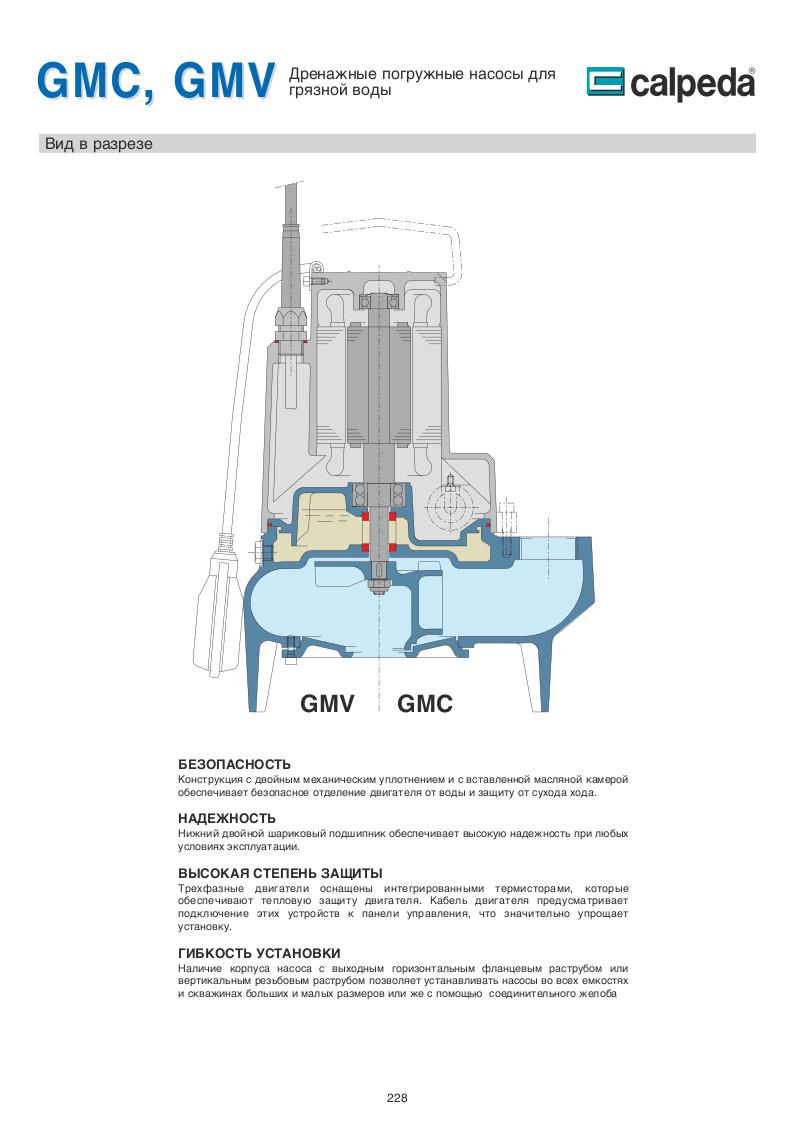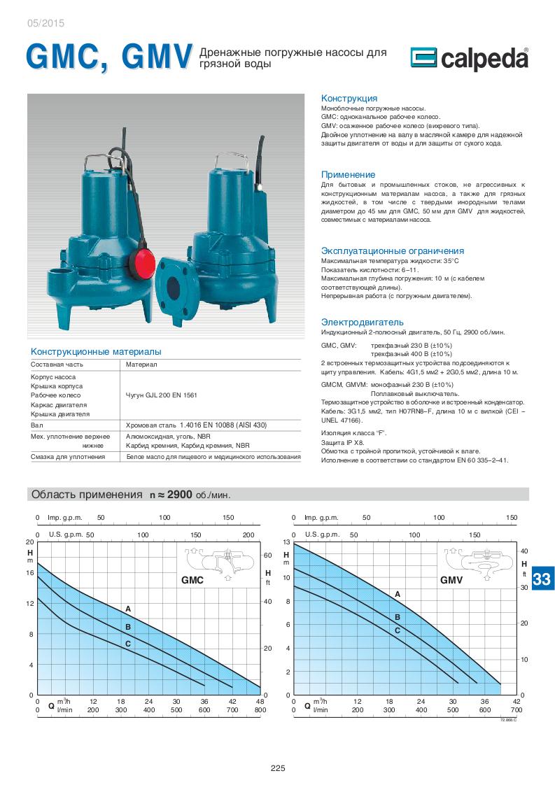 Насосы GMC 50, GMV 50 производства компании Calpeda (Италия) применяются для бытовых и промышленных стоков не агрессивных к конструкционным материалам насоса,а также для грязных жидкостей, в том числе с твердыми инородными телами диаметром до 45 мм для GMC, 50 мм для GMV для жидкостей совместимых с материалами насоса.