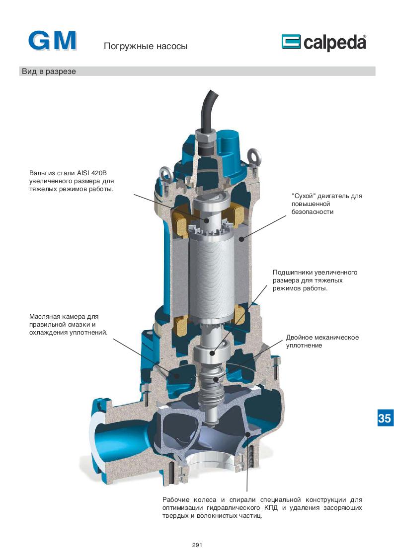 Погружные насосы с многоканальным рабочим колесом от компании Calpeda (Италия) имеют, двойное уплотнение с масляной камерой