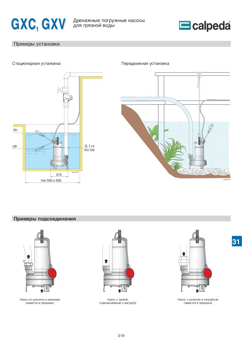 Дренажные погружные насосы Calpeda GXC40 GXV40