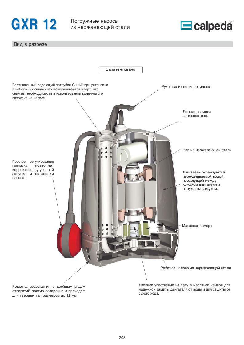 Конструкция насосов Calpeda GXC 40, GXV 40.