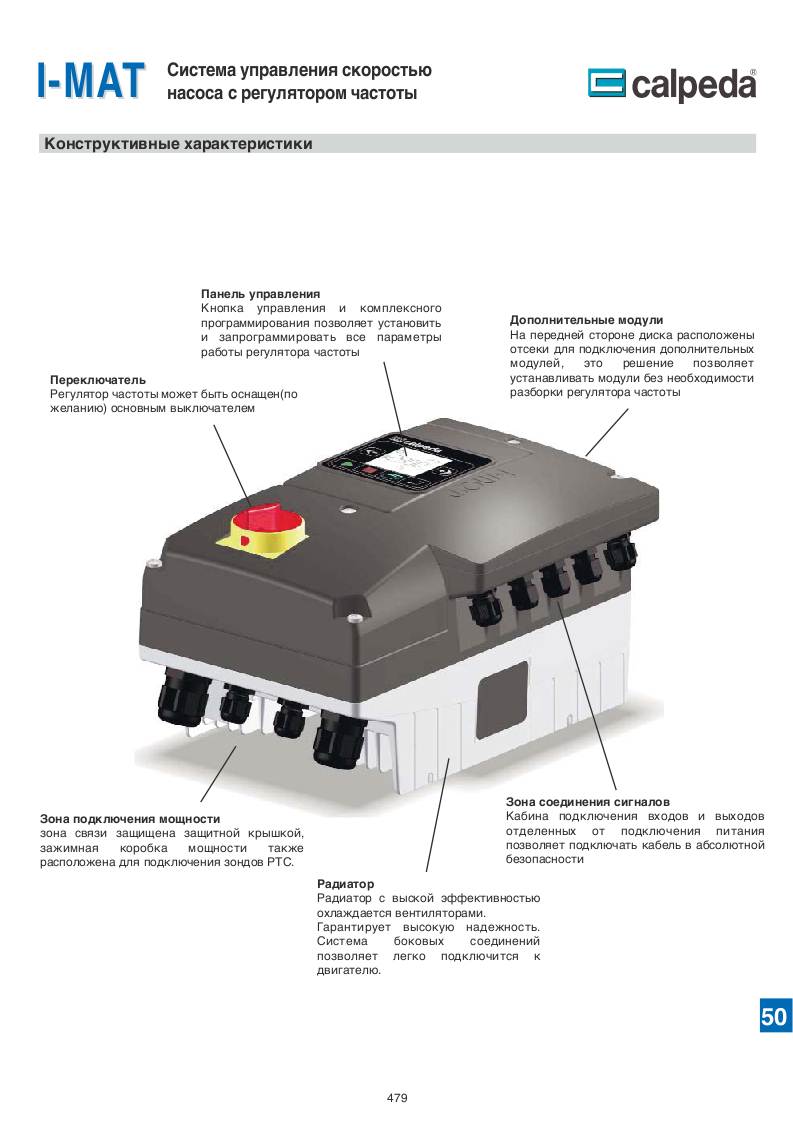 Система с переменной скоростью, управляемая от частотного преобразователя для регулировки двигателя в приложениях водоснабжения и распределения горячей и холодной воды. I-MAT это интегрированная система управления позволяющая управлять широким спектром приложений и режимов работы.