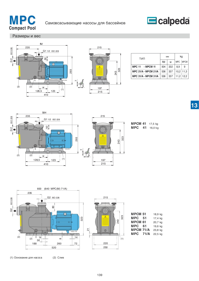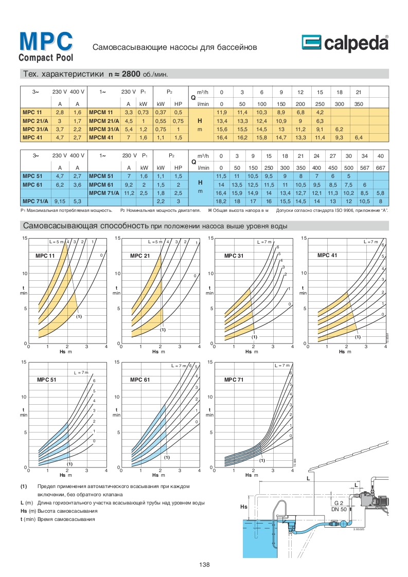 MPC: трехфазный 230/400 В ±10%, MPCM: однофазный 230 В ±10% с термозащитным устройством не более 1,5 kW.