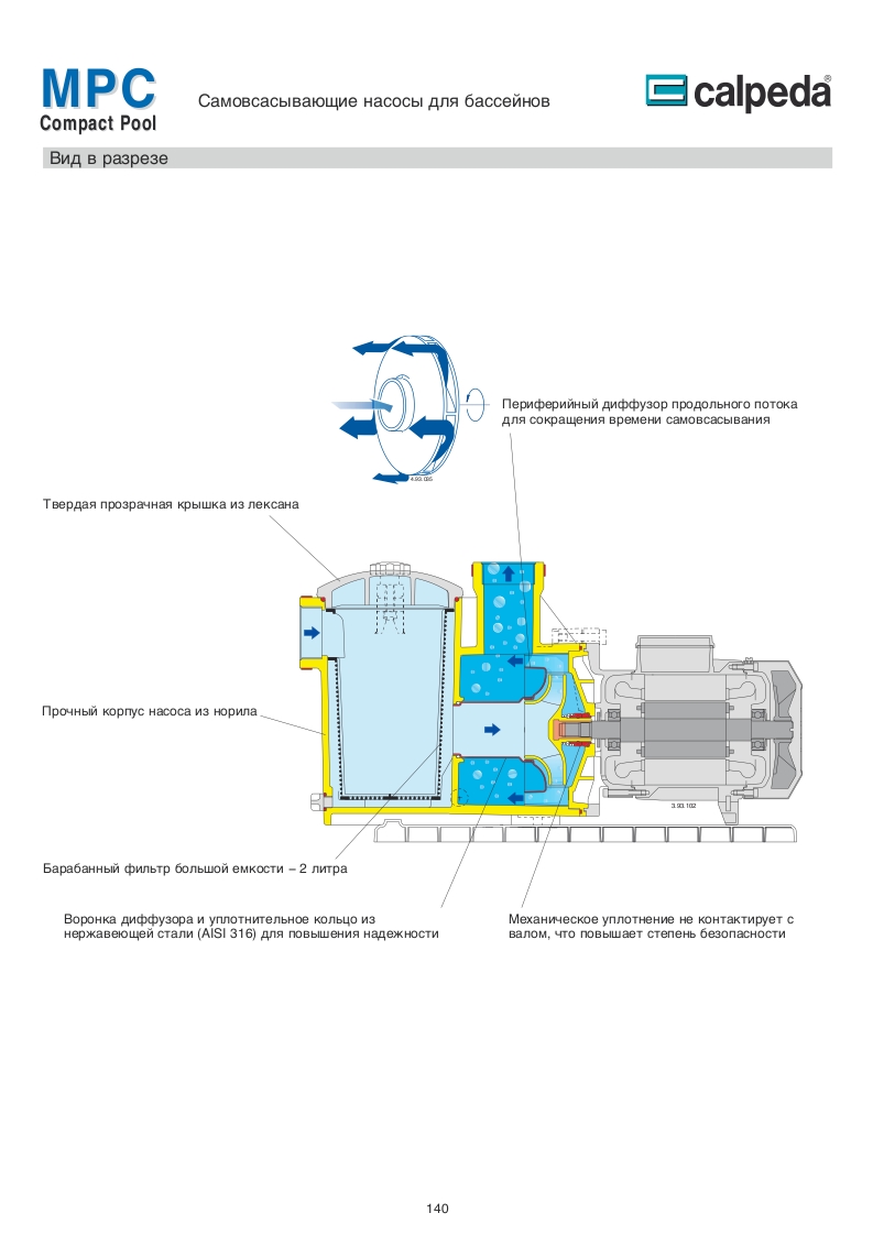 Насосы MPC производства Calpeda (Италия) применяются для перекачки воды в установках фильтрации бассейнов,
