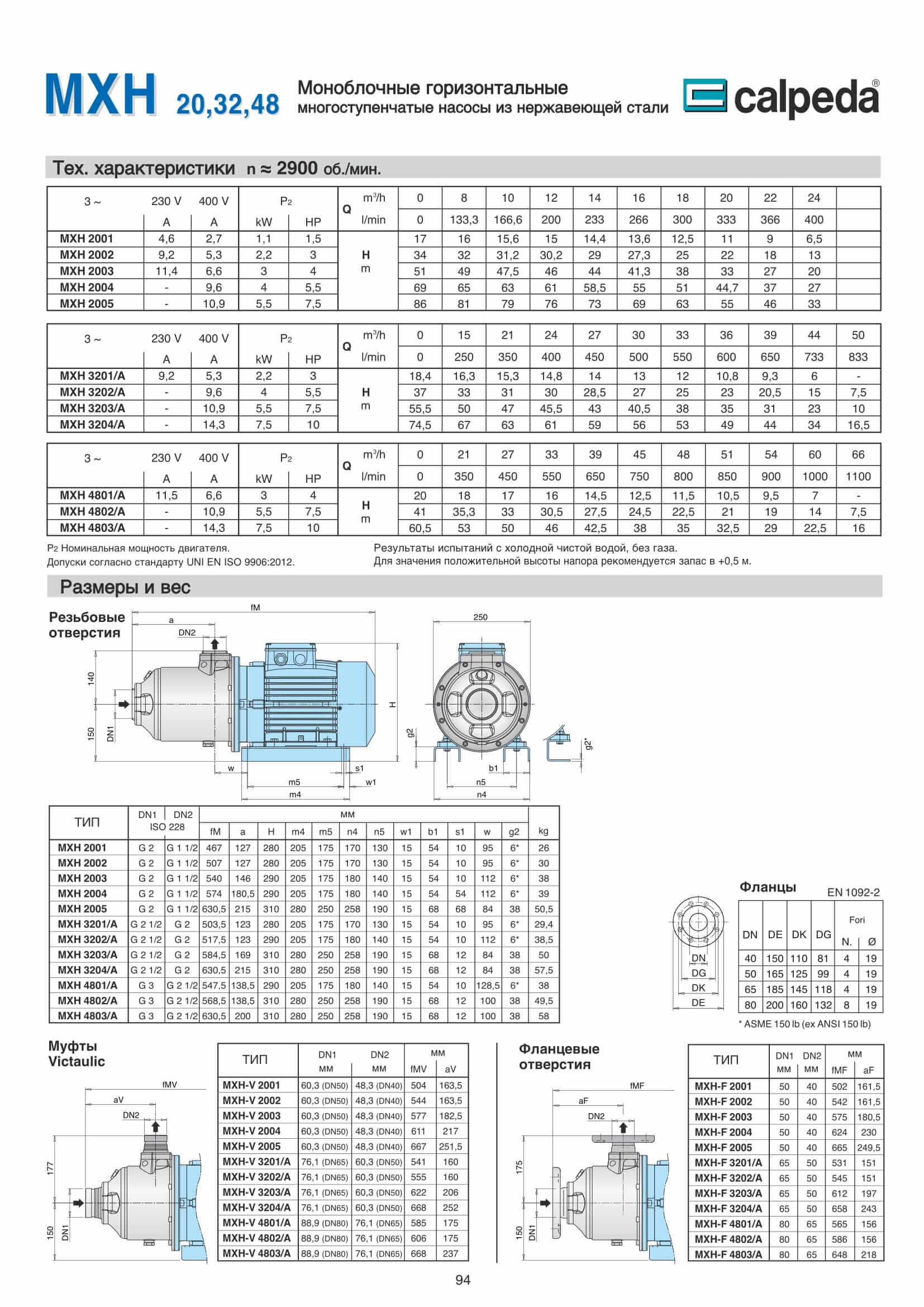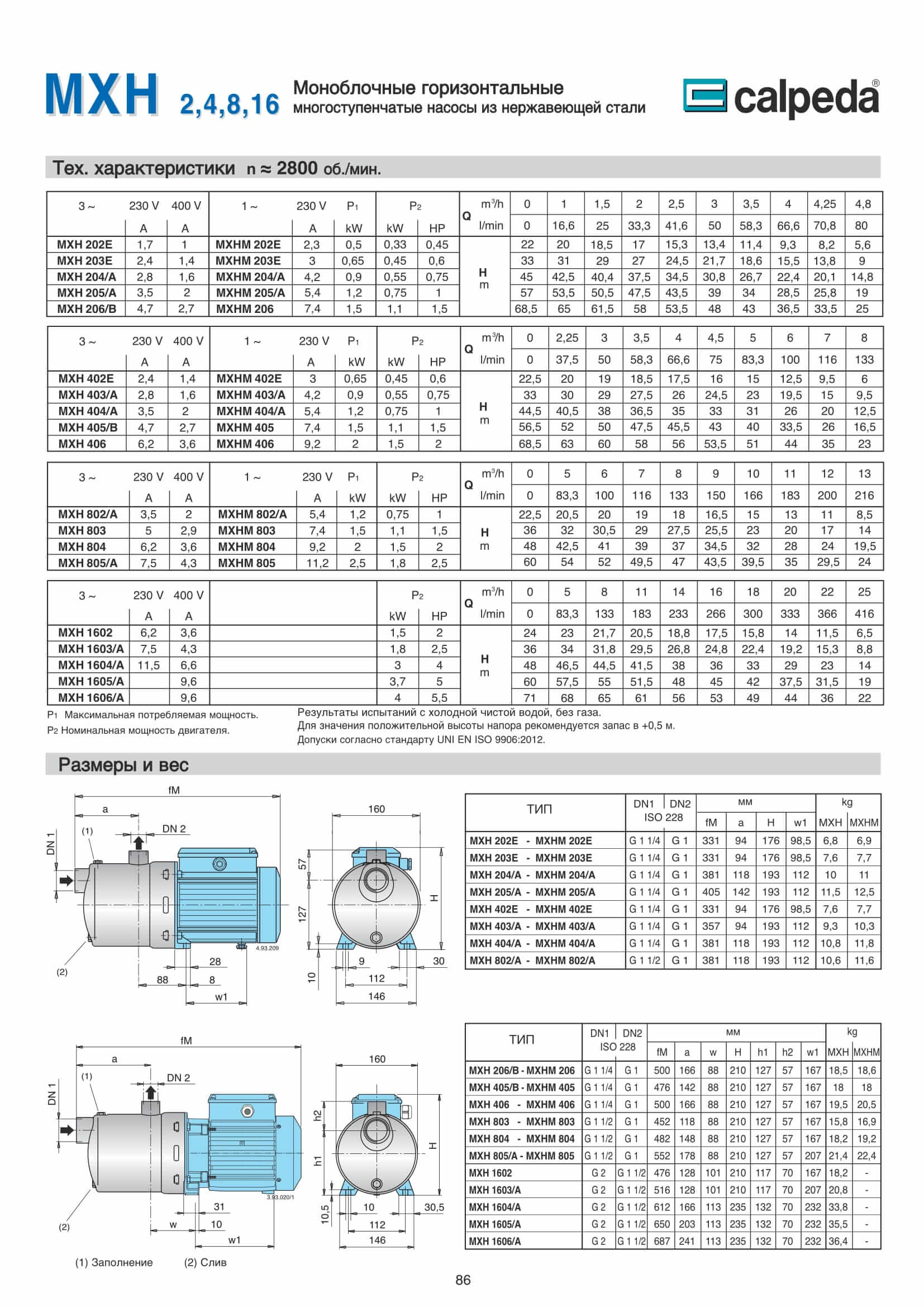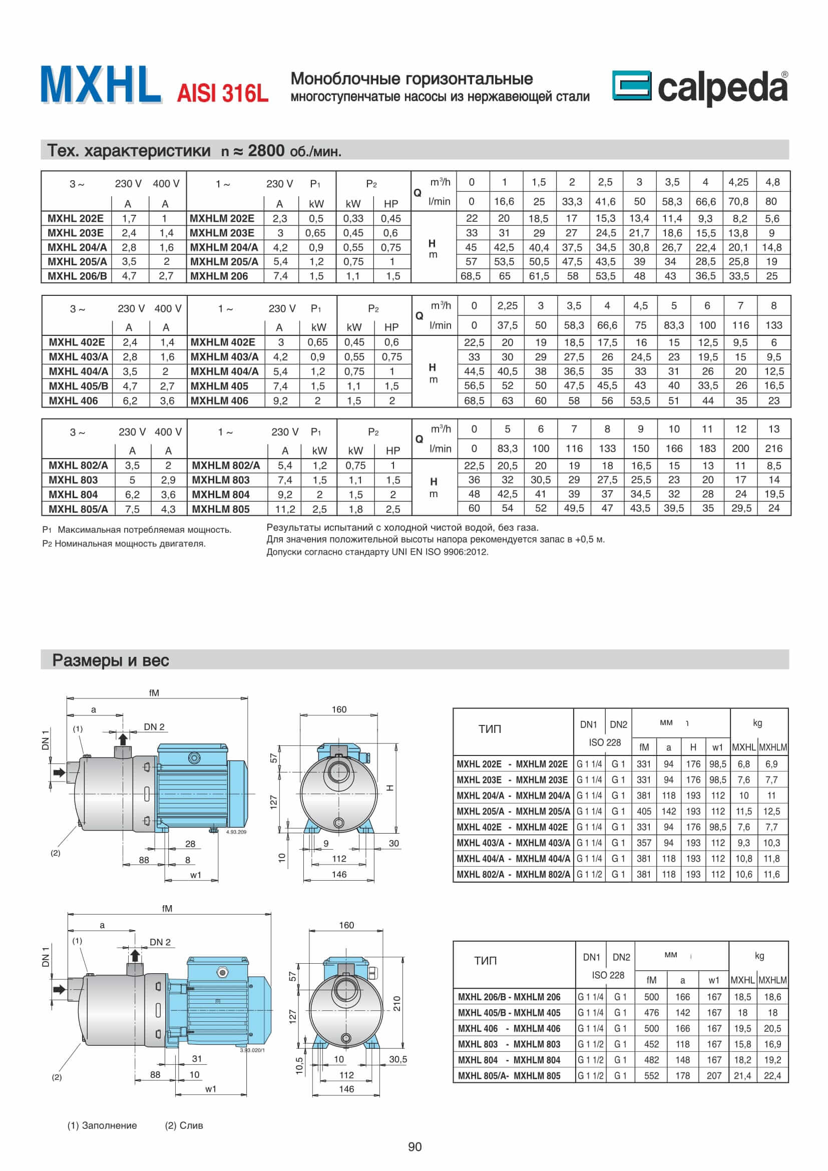 Многоступенчатые насосы Calpeda MXH,MXHM,MXHL