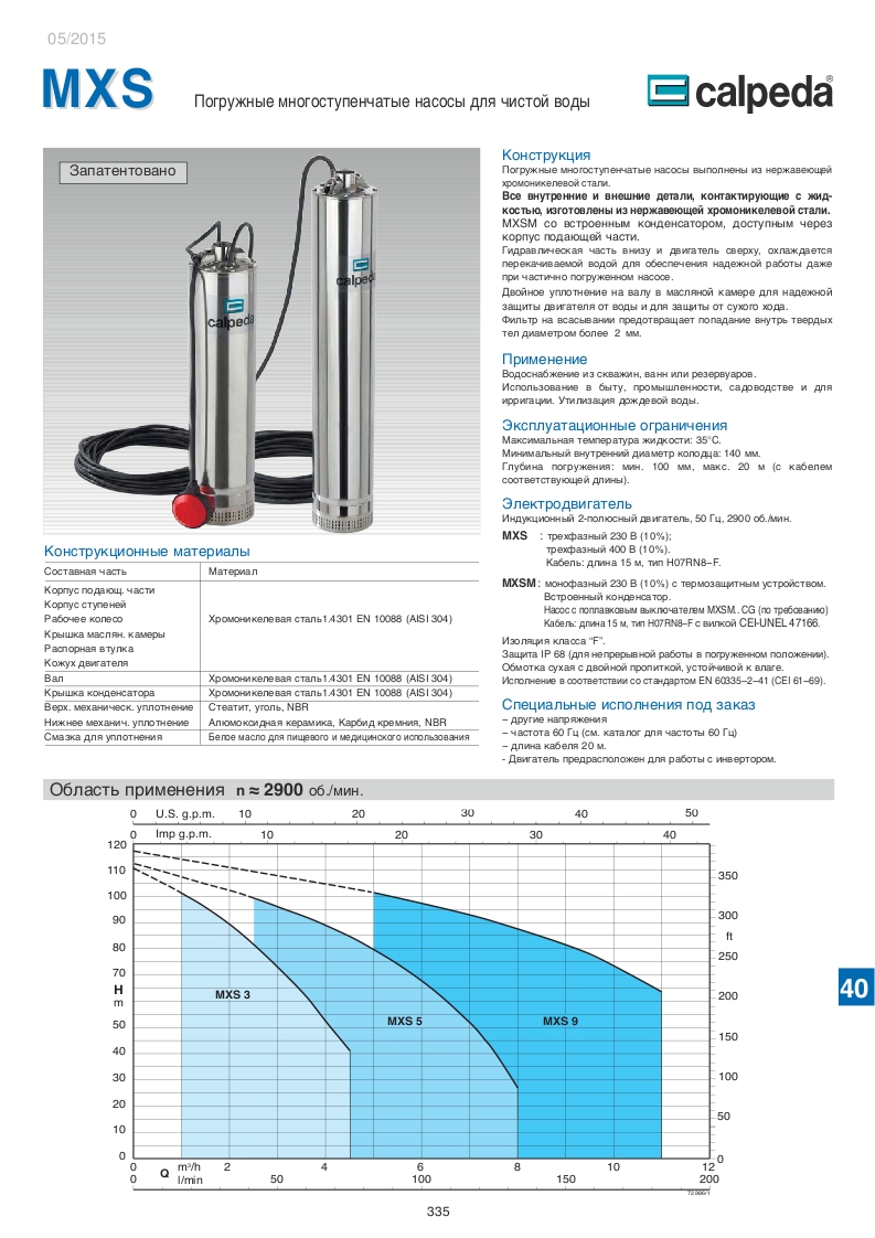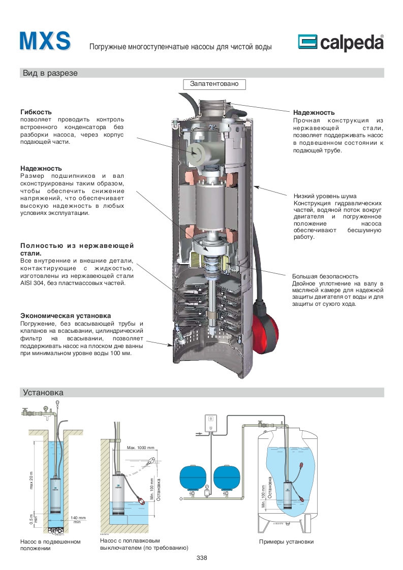 Насосы MXS производства итальянской компании Calpleda предназначены для водоснабжение из скважин, ванн или резервуаров.