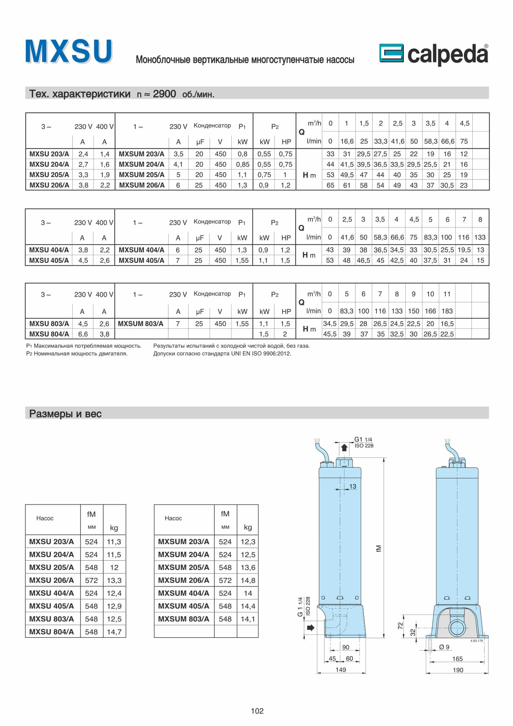 Многоступенчатые насосы Calpeda MXSU