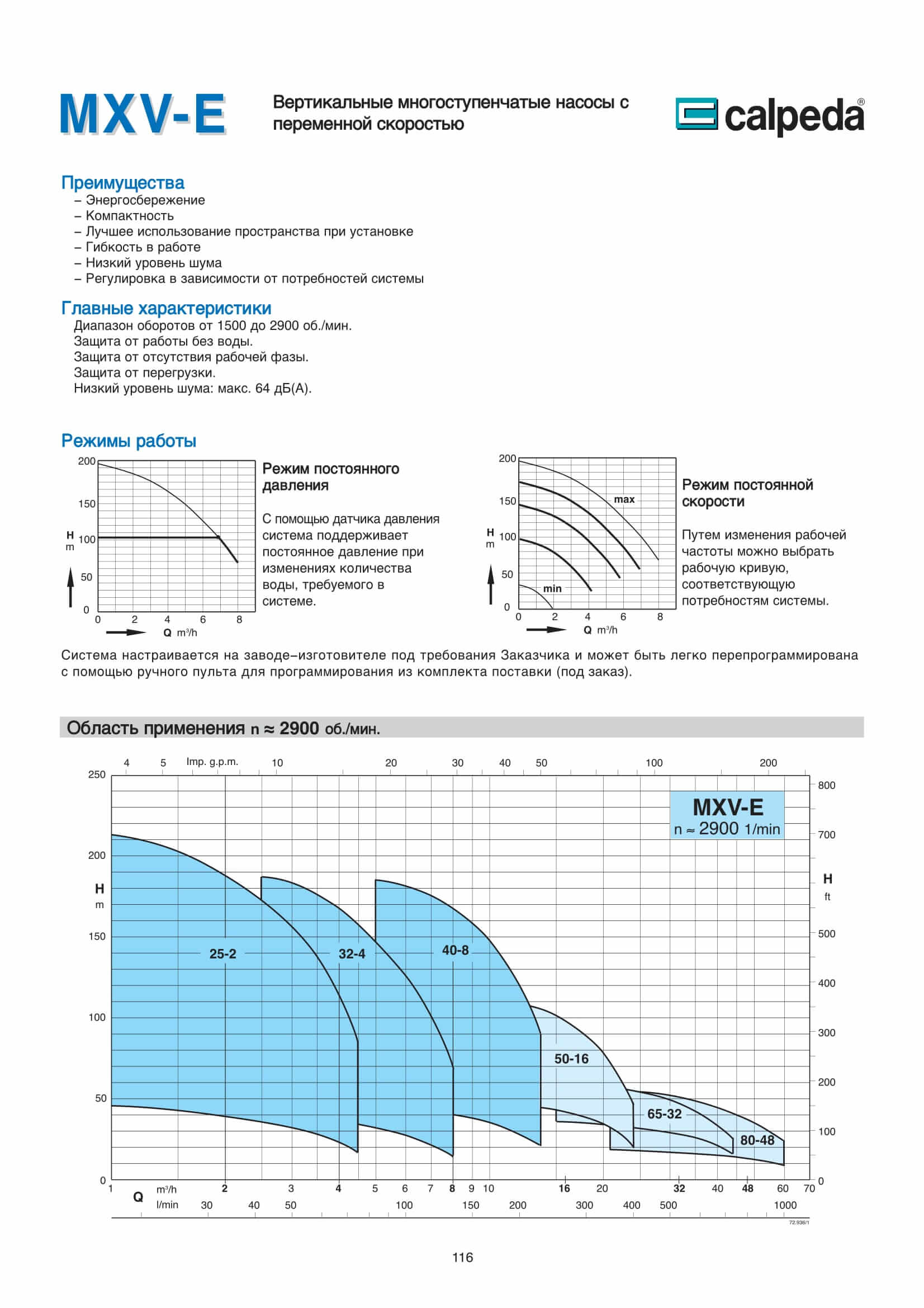 Насосы MXV-E производства итальянской компании Calpeda служат для повышение давления в линии, для водоснабжение высоких зданий, для моечных систем, промышленных бустерных станций, систем с подстройкой рабочей кривой под потребности пользователей.