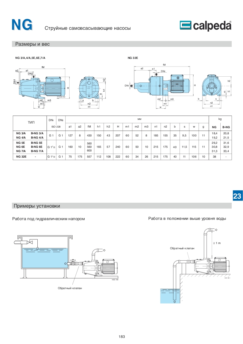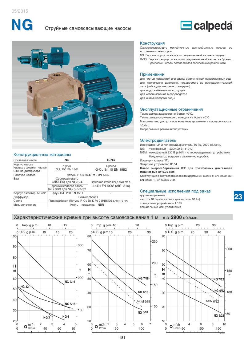 Конструкция насосов Calpeda NG.