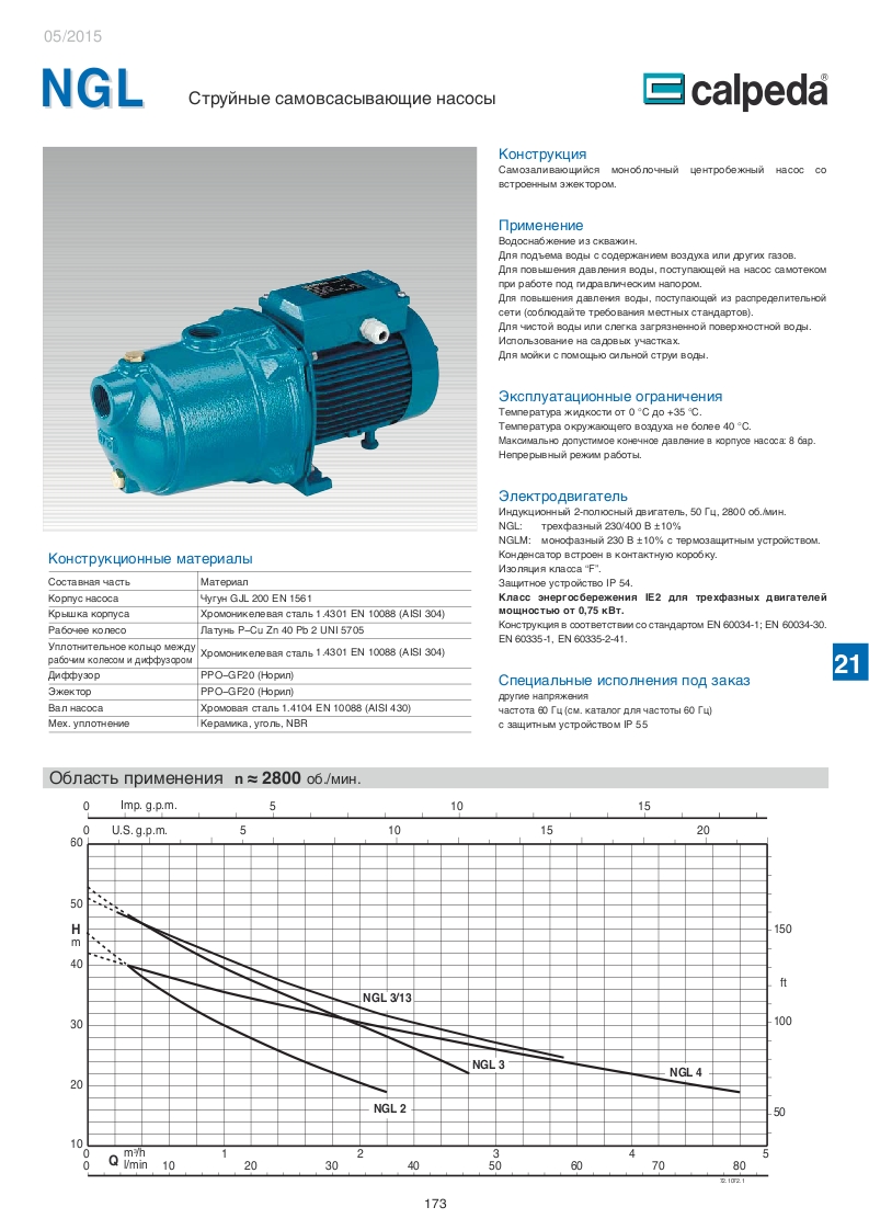 Конструкция насосов Calpeda NGL.