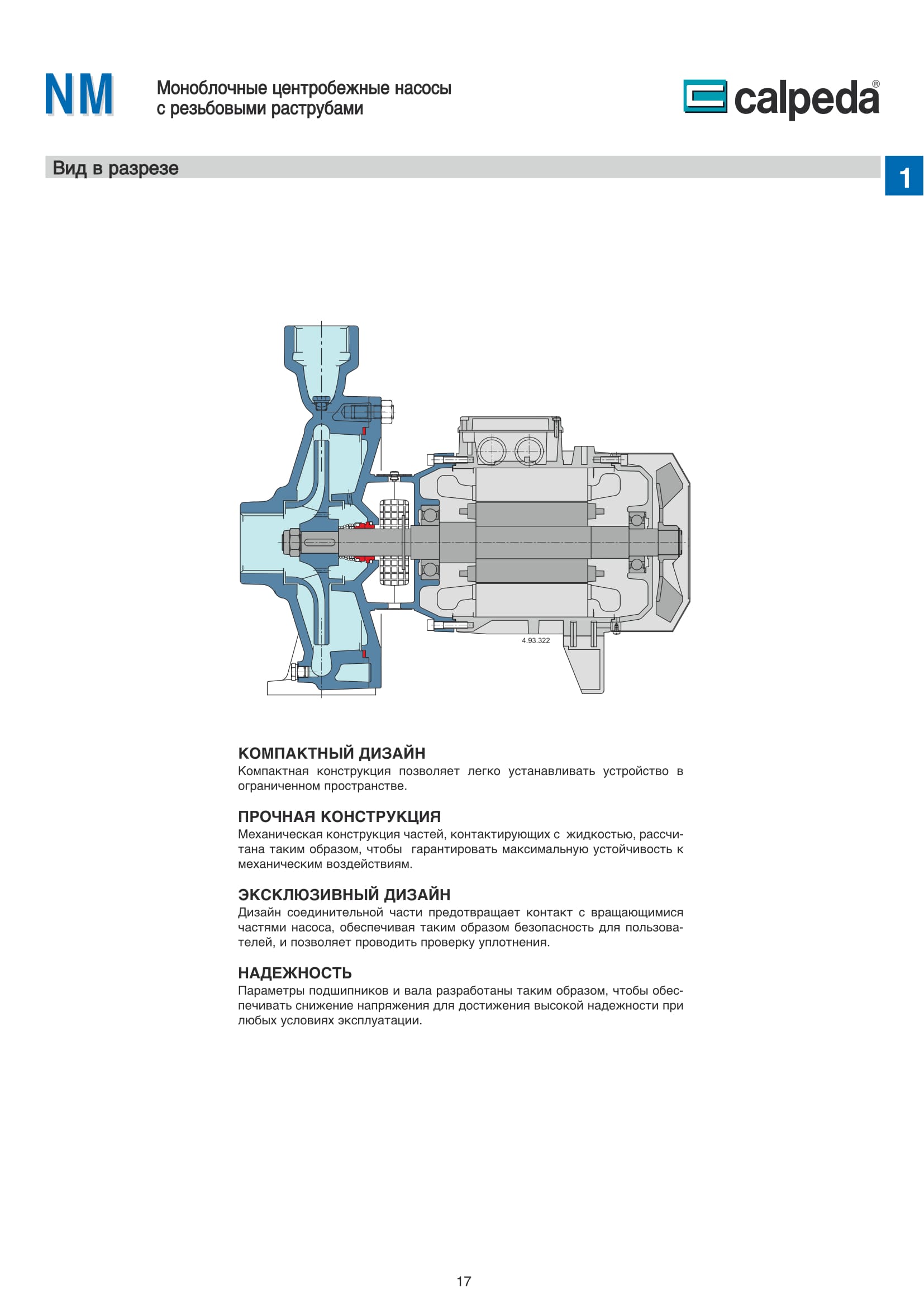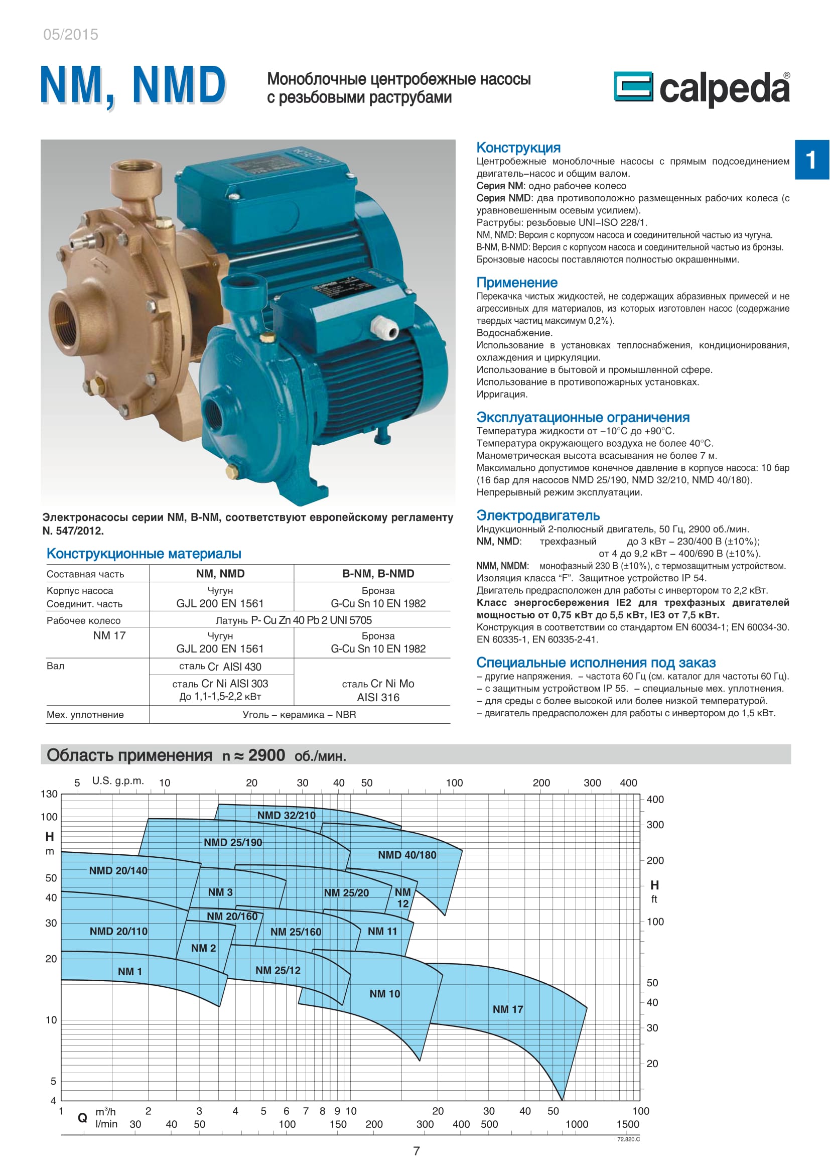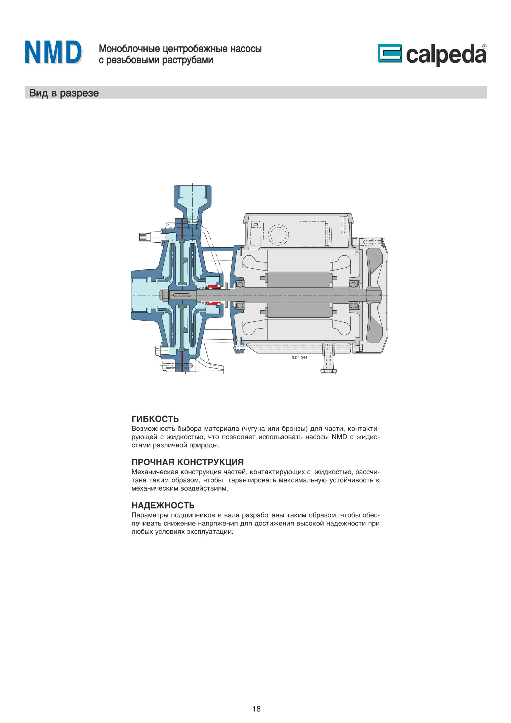 Конструкция насосов Calpeda NM, NMD.
