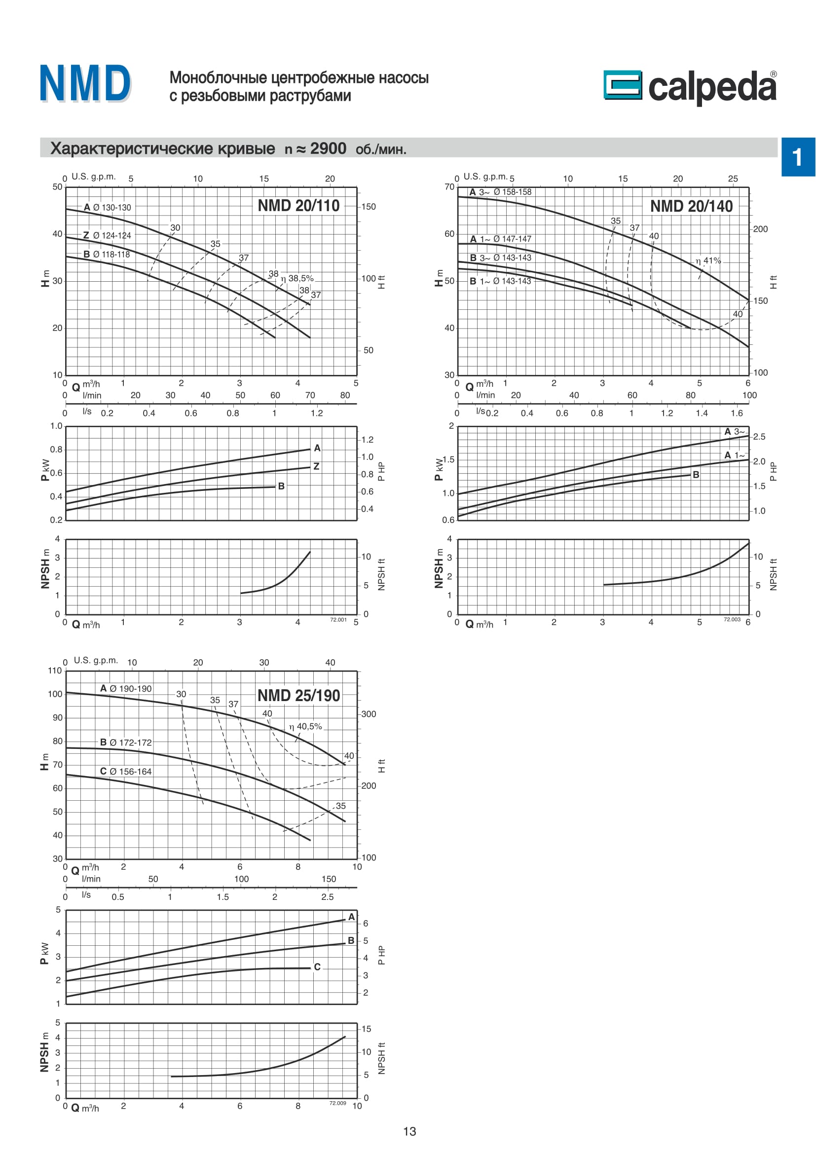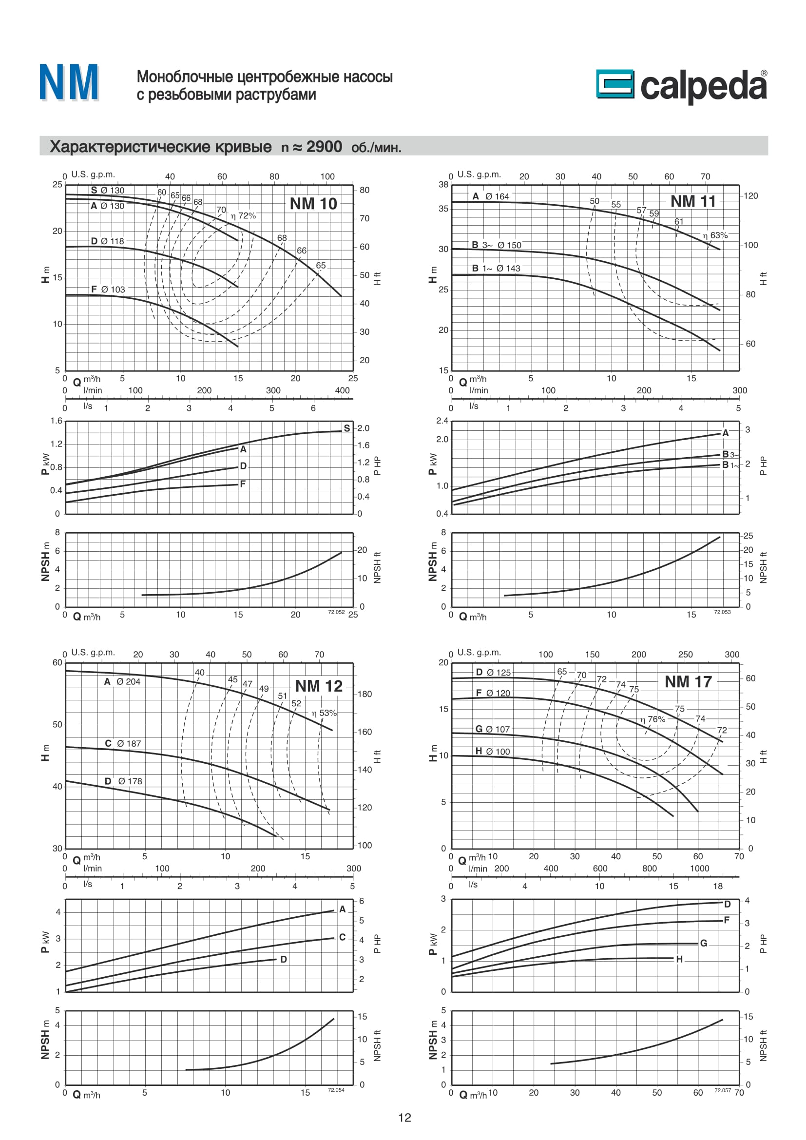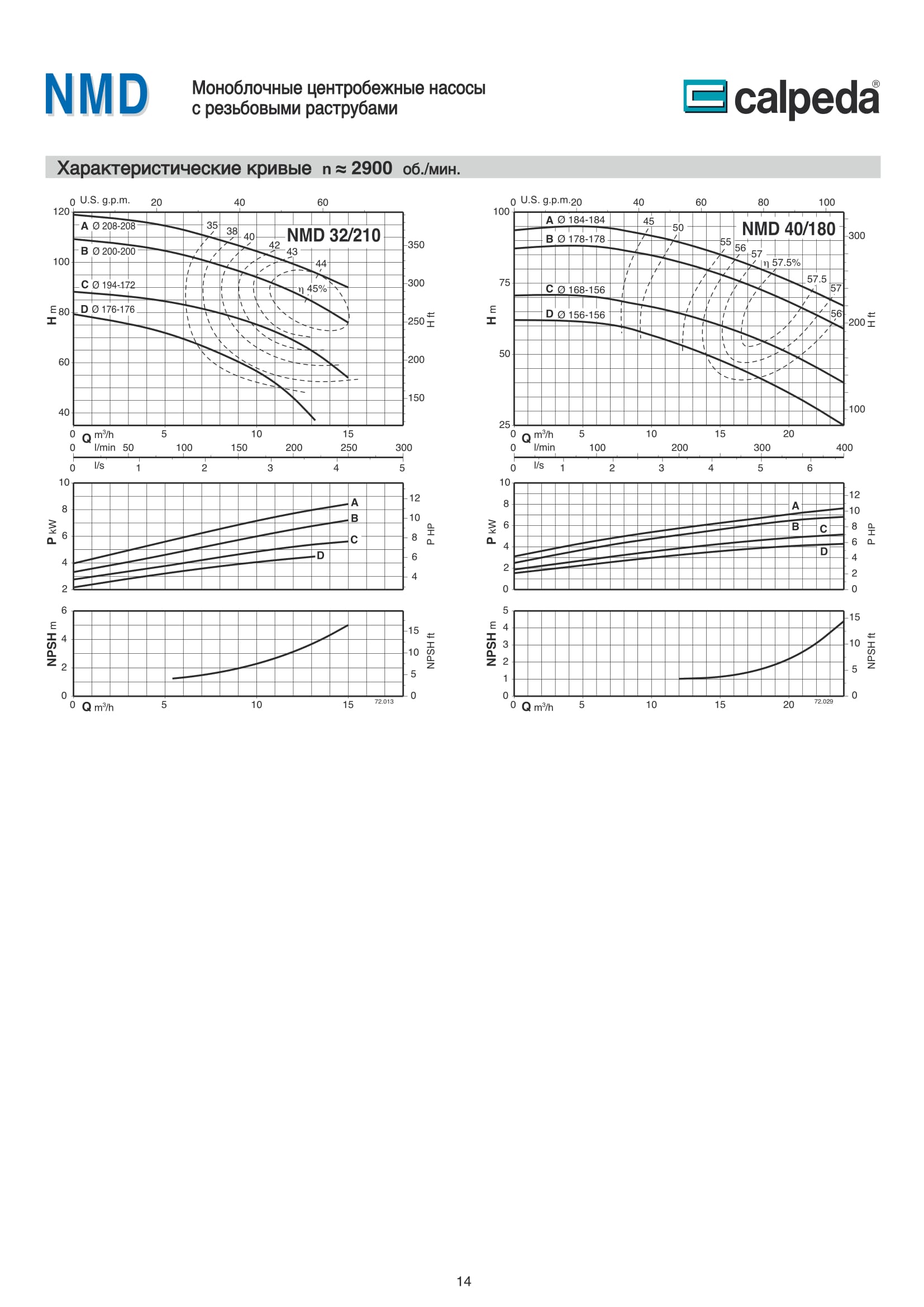 Конструкция насосов Calpeda NM, NMD.