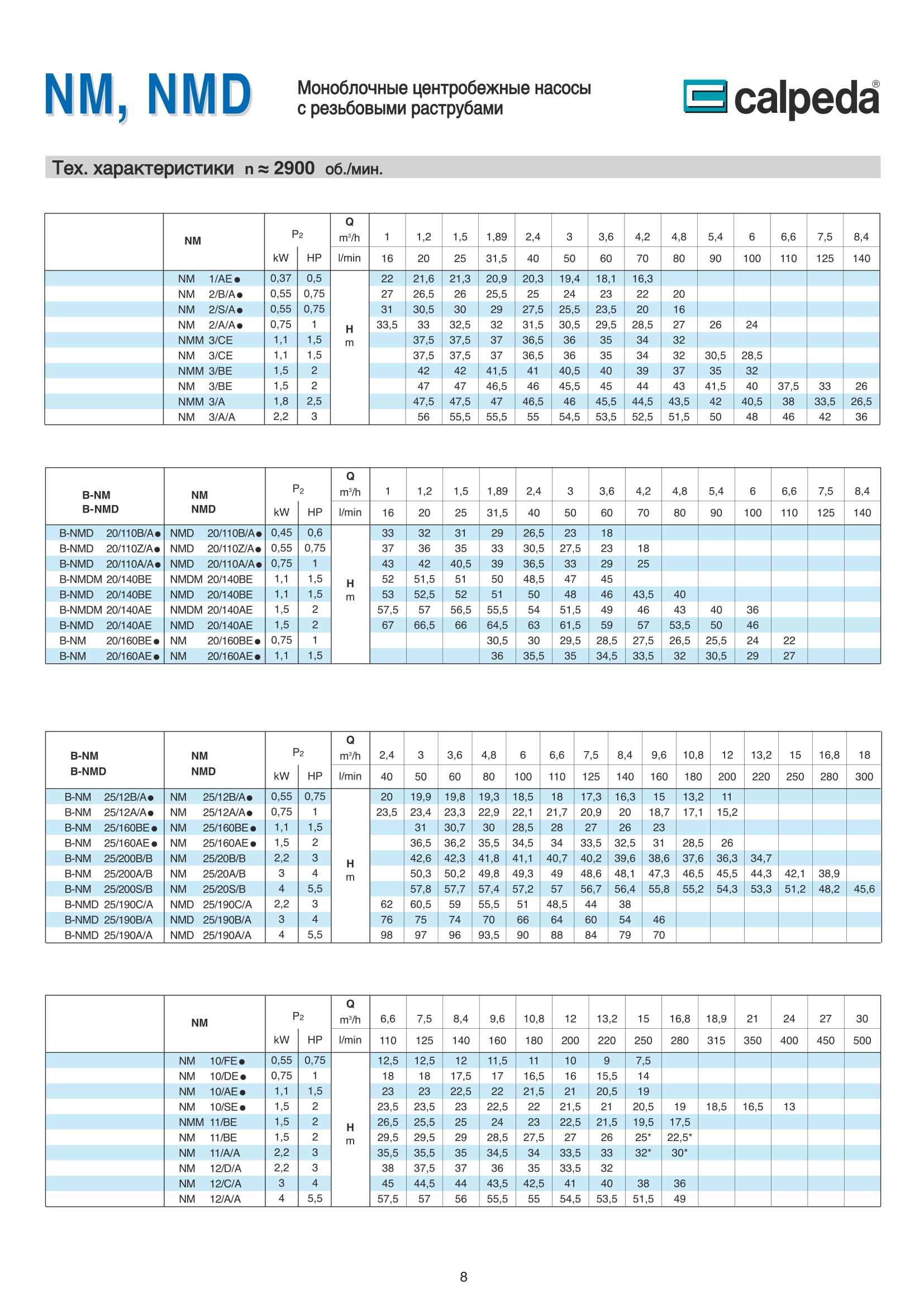Насосы NM, NMD от итальянской компании Calpeda предназначены для перекачки чистых жидкостей, не содержащих абразивных примесей и не агрессивных для материалов, из которых изготовлен насос (содержание твердых частиц максимум 0,2%).