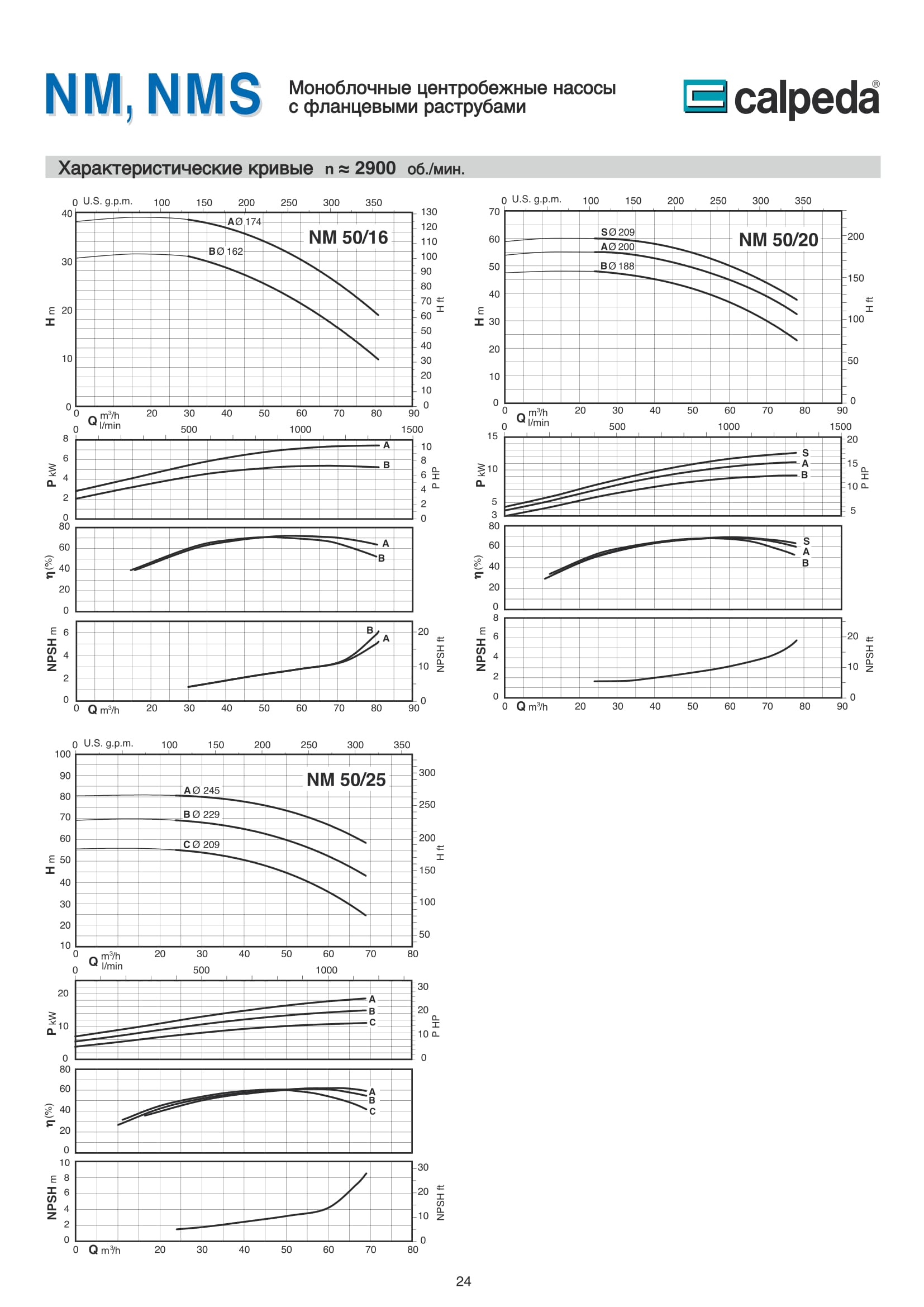Эксплуатационные ограничения насосов CALPEDA NM и NMS