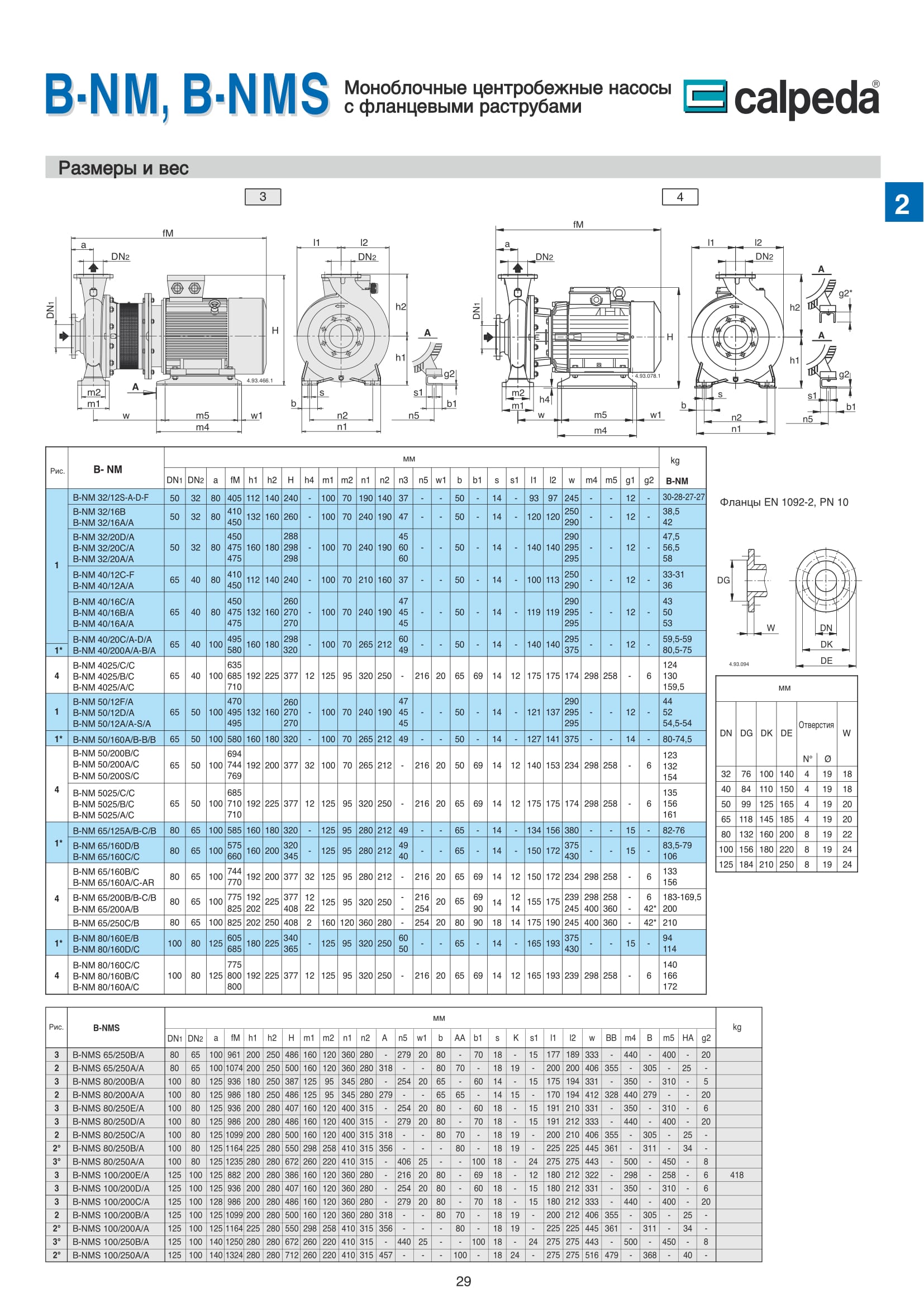- B-NM и B-NMS корпус насоса и рабочее колесо из бронзы.