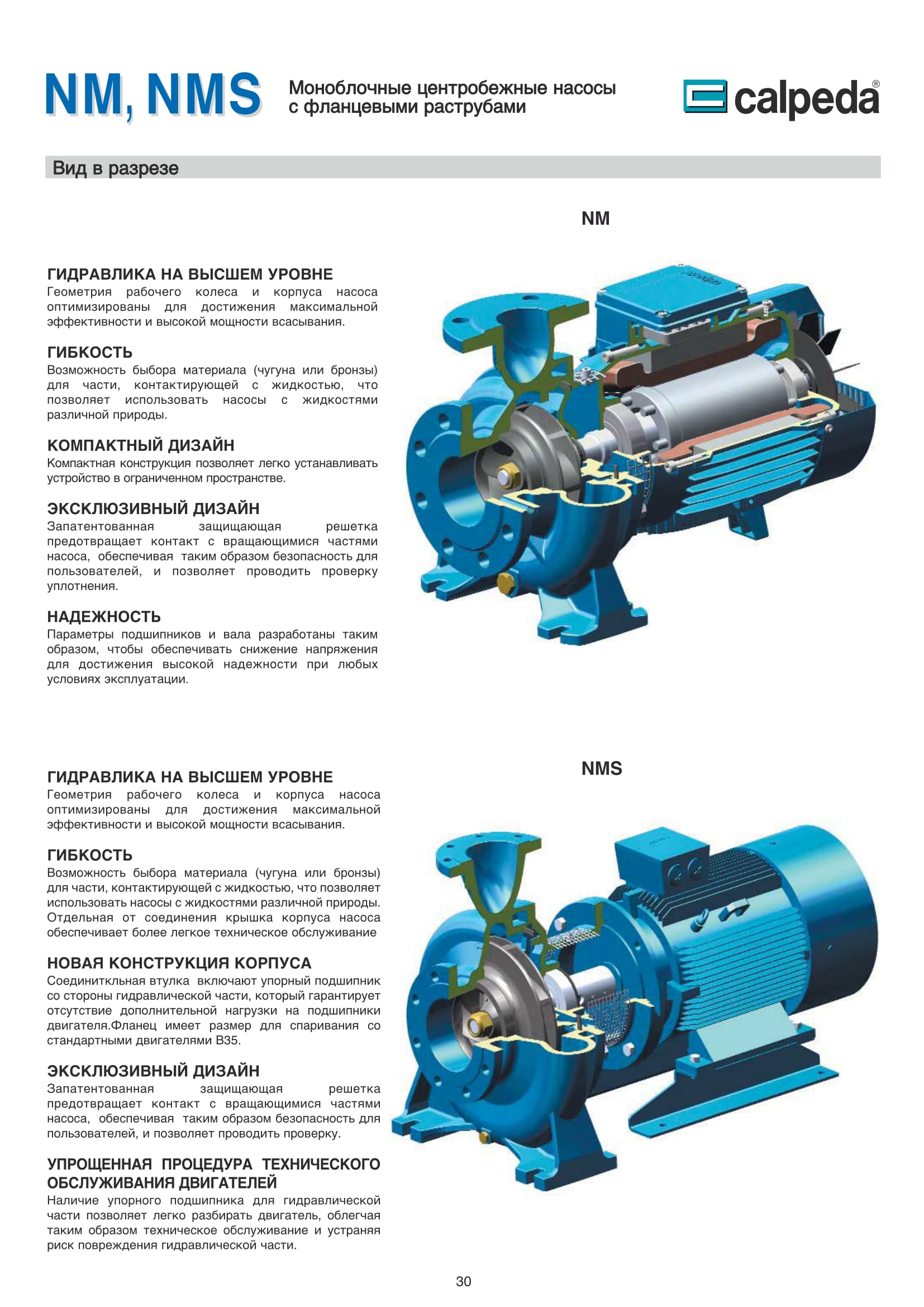 Конструкция насосов CALPEDA NM и NMS
