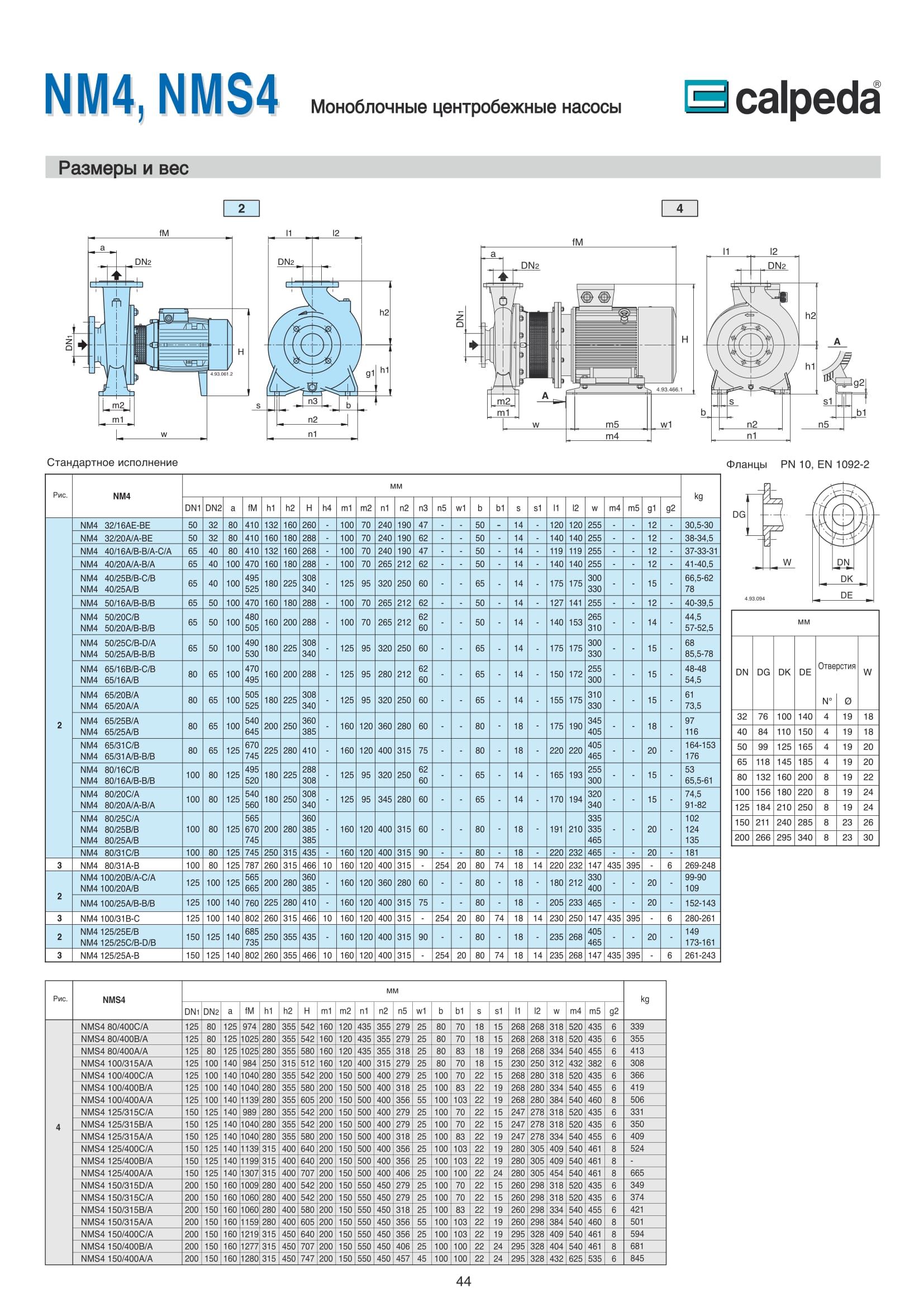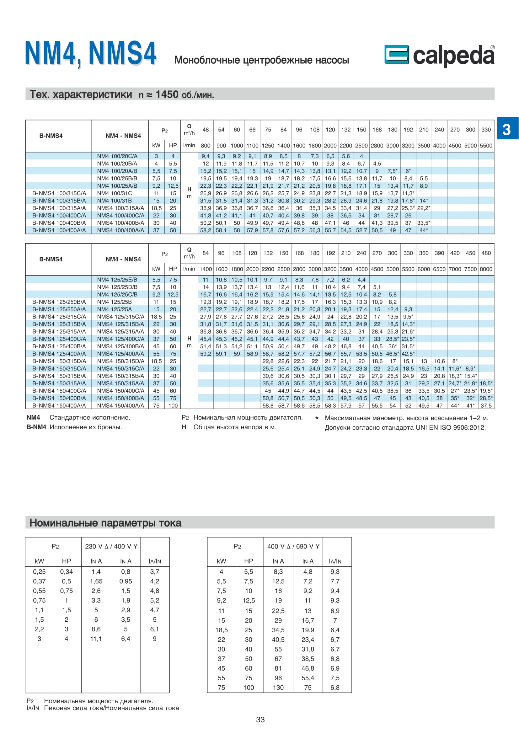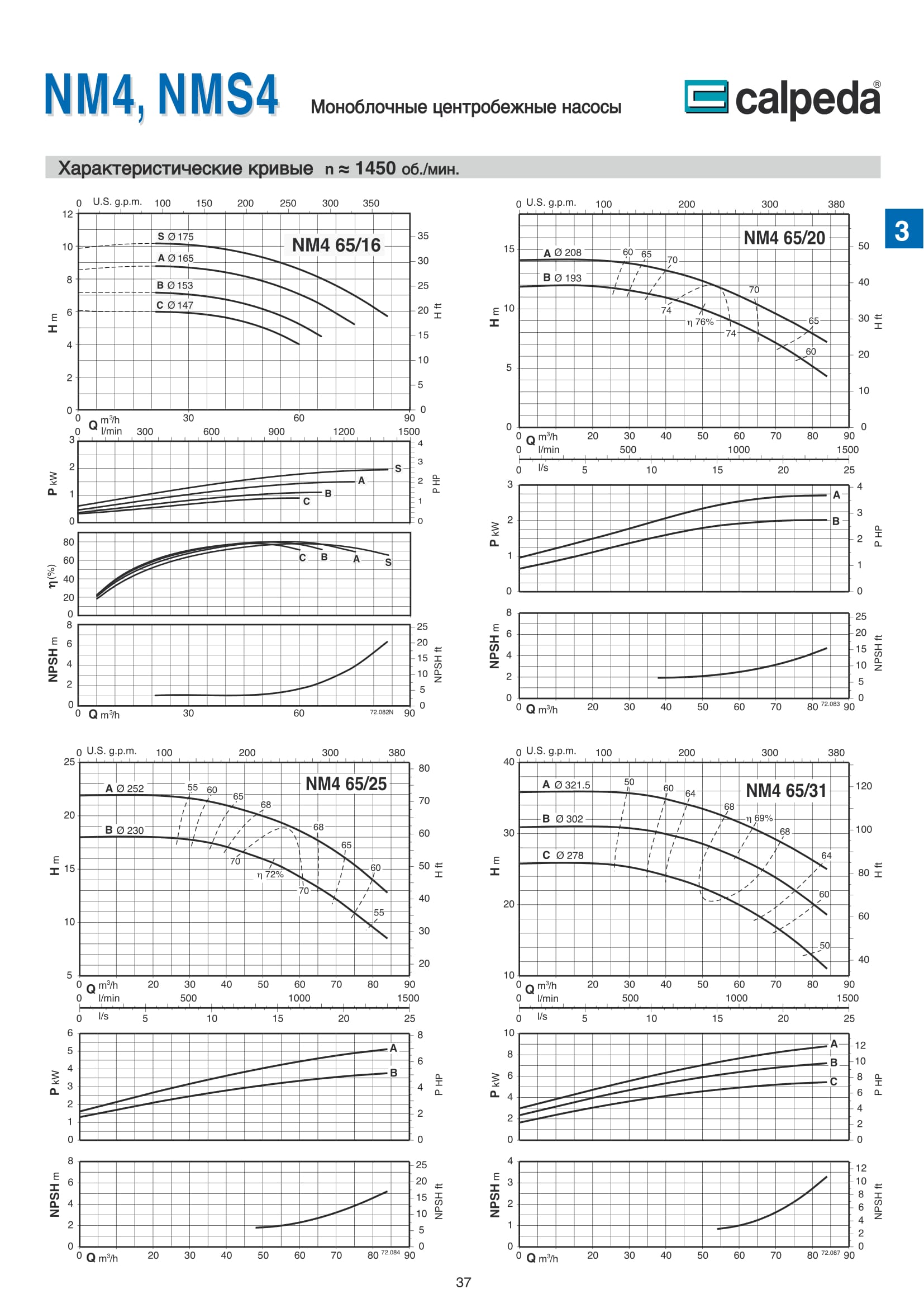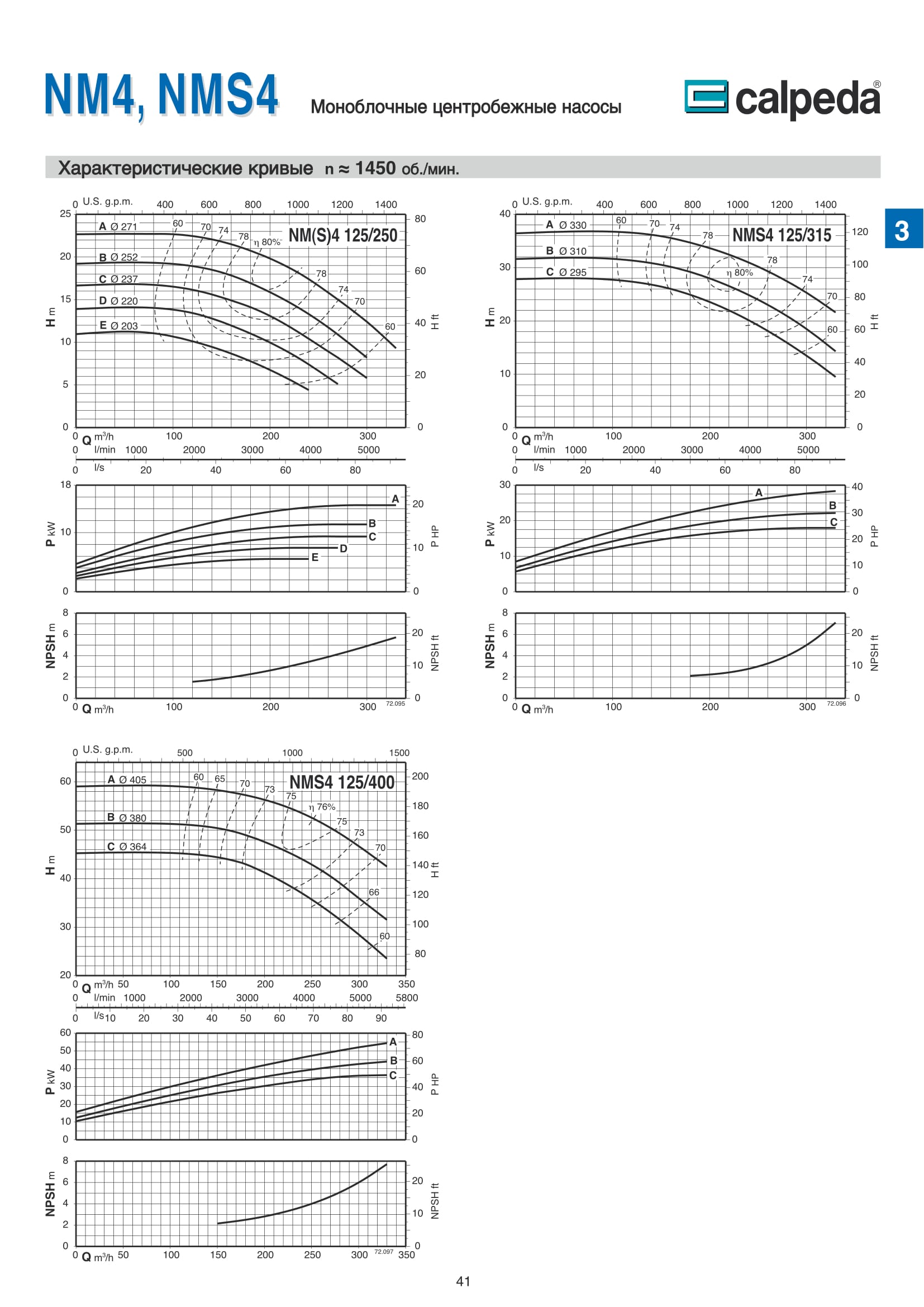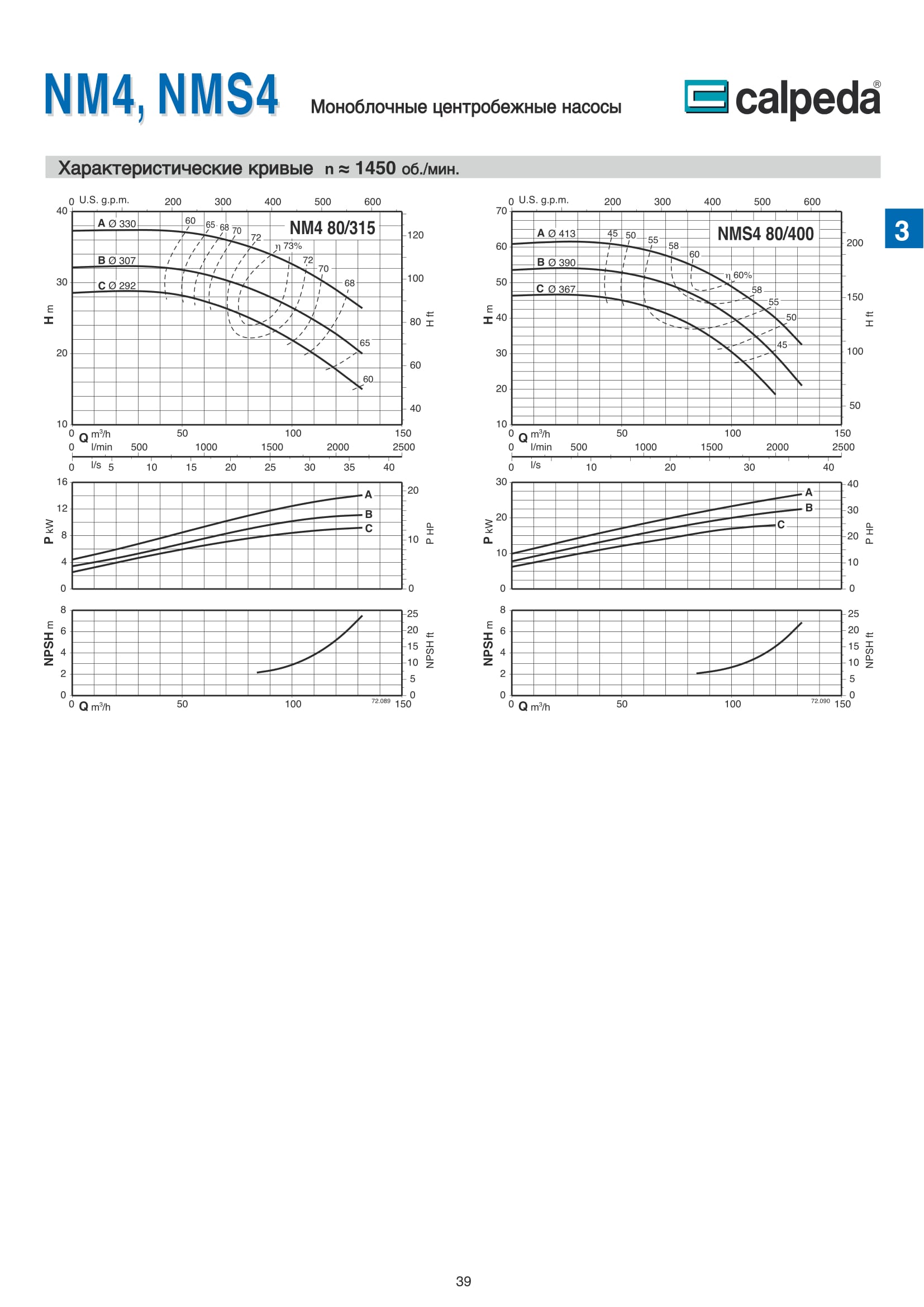 Центробежные моноблочные насосы Calpeda NM4 и NMS4 с двигателями 1450 об/мин. предназначены для холодного и горячего водоснабжения, повышения давления в сети подачи воды, используются в установках теплоснабжения, кондиционирования и циркуляции, в бытовой и промышленной сфере. Максимальная производительность насосов NM4 и NMS4 — 480 м³/ч, напор 61,5 м.