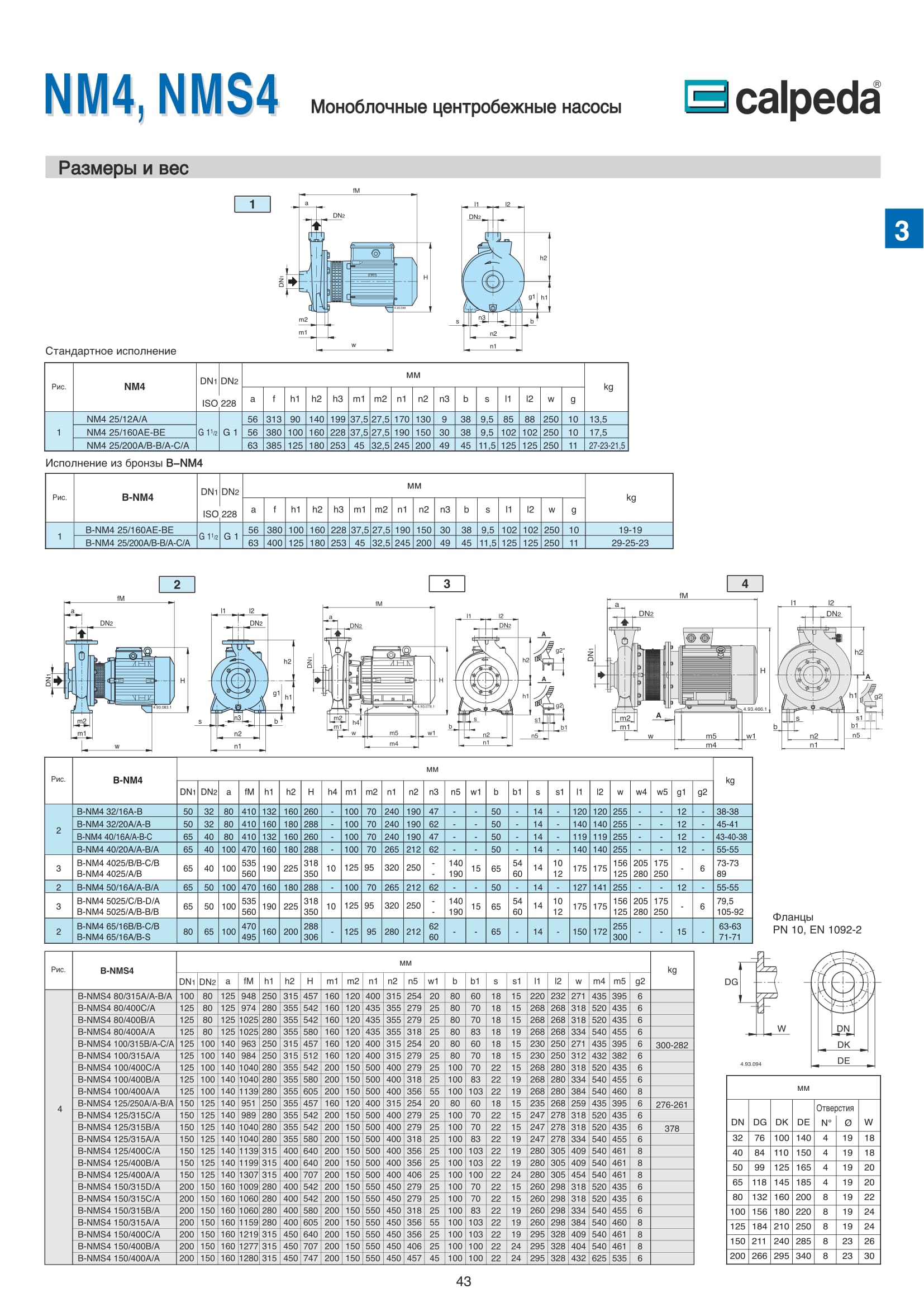 - B-NM4 и B-NMS4 корпус насоса и рабочее колесо из бронзы.