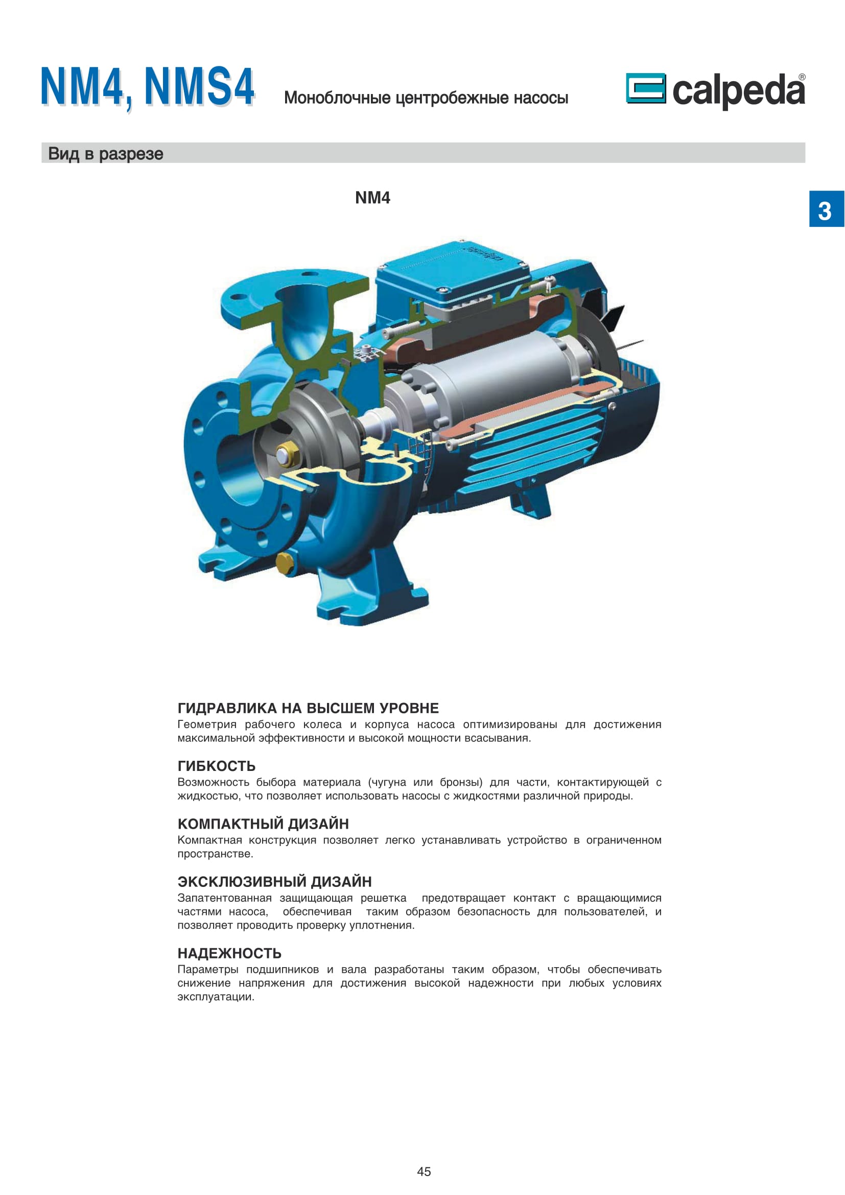 Конструкция насосов CALPEDA NM4 и NMS4