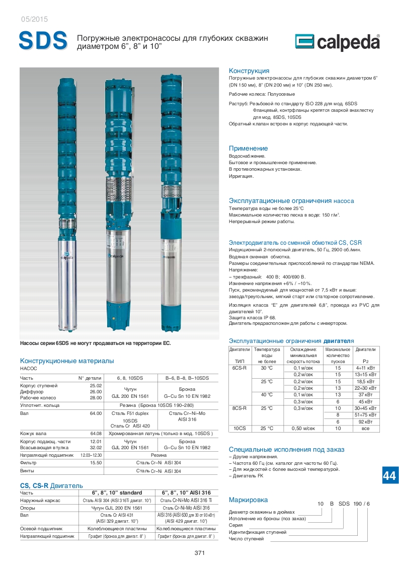 Конструкция насосов Calpeda SDS.