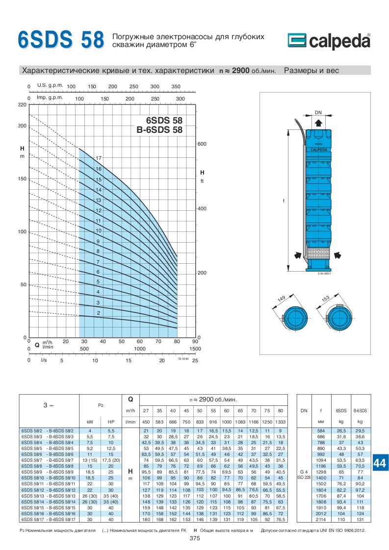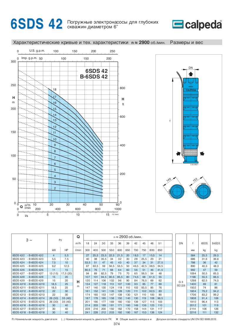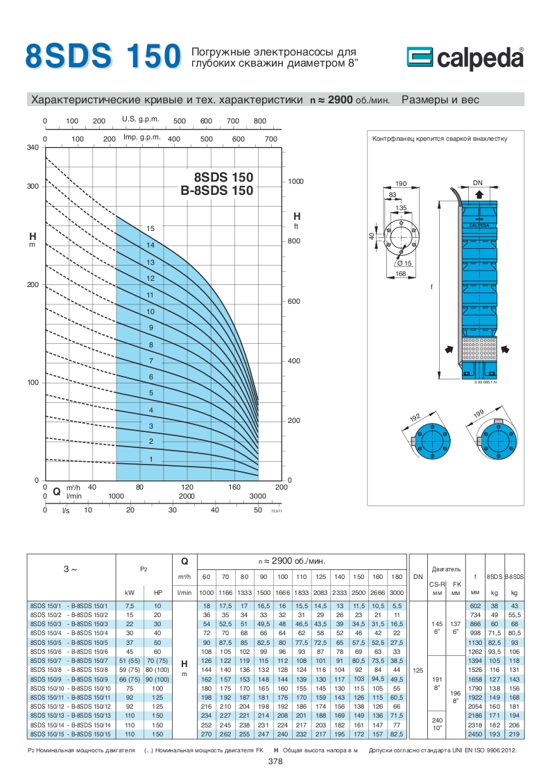 Скважинные 4-6-8 дюймовые насосы Calpeda SDS