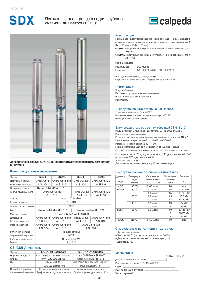 Конструкция насосов Calpeda SDX.