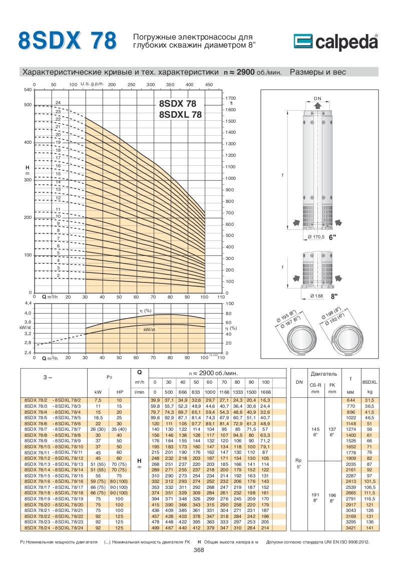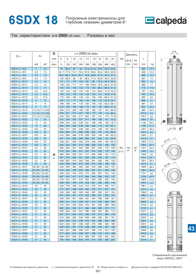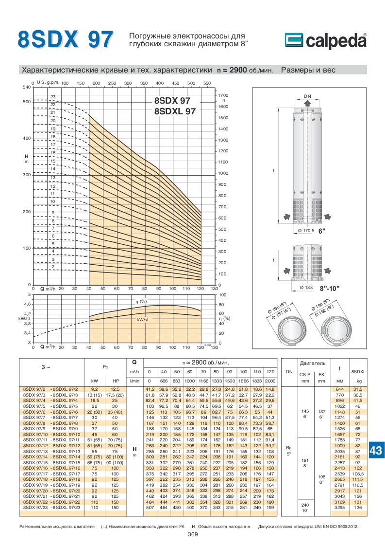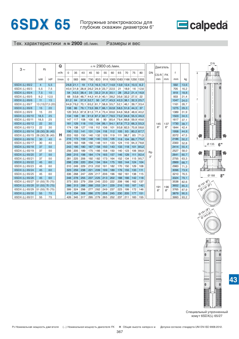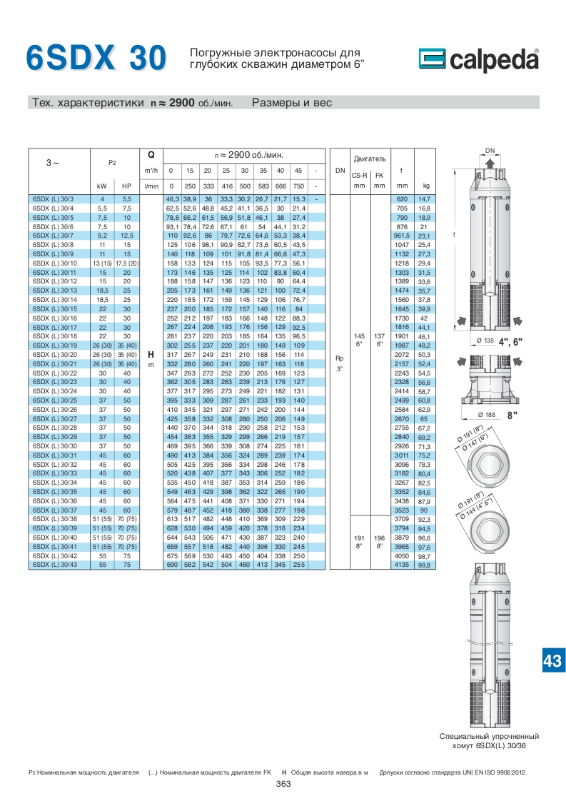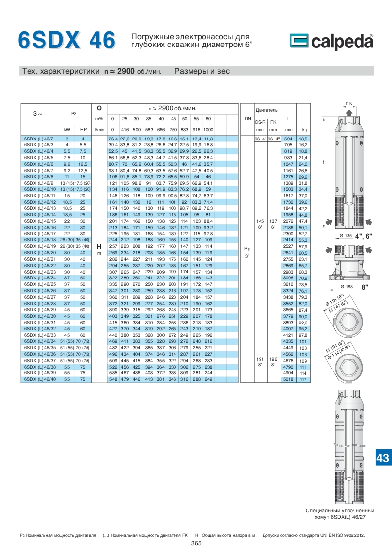 Скважинные 4-6-8 дюймовые насосы Calpeda SDX