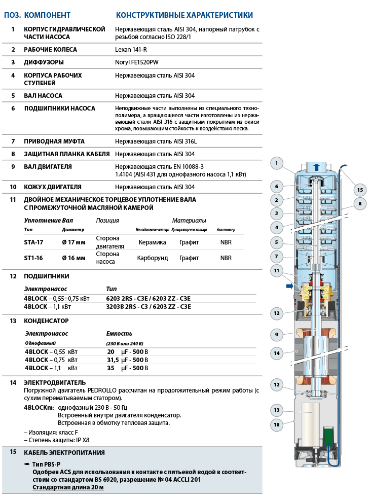 Скважинные моноблочные 4-X дюймовые насосы Pedrollo 4BLOCK