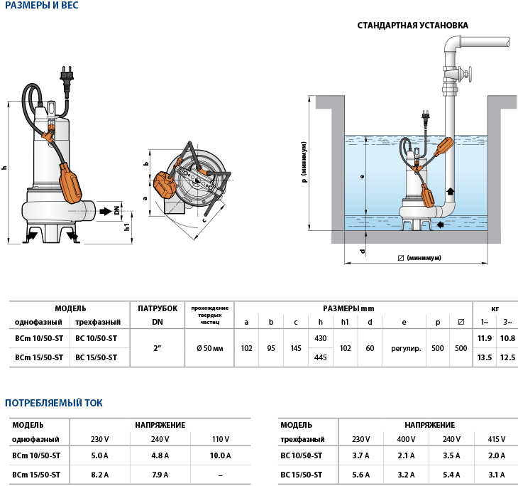 Погружные насосы BC-ST предназначены для дренажа загрязненных и сточных вод, а так же для бытовых и промышлешнных установкок.