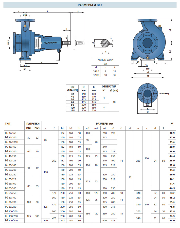 Центробежные стандартизированные насосы Pedrollo FG