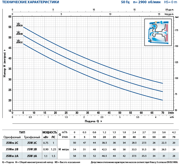 • Манометрическая высота всасывания до 9 м (HS)
