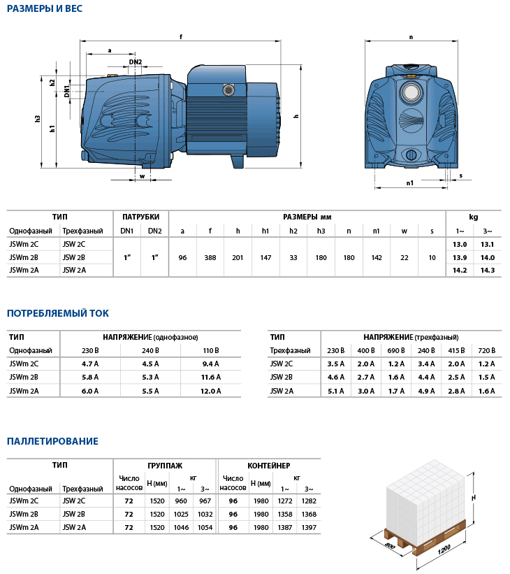 Самовсасывающие насосы Pedrollo JSW2