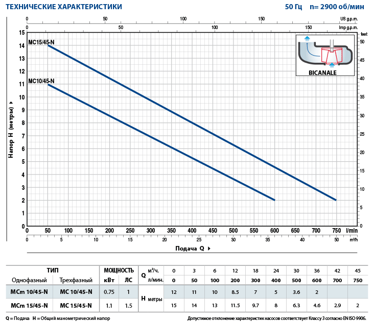 • Подача до 750 л/мин (45 м³/ч)