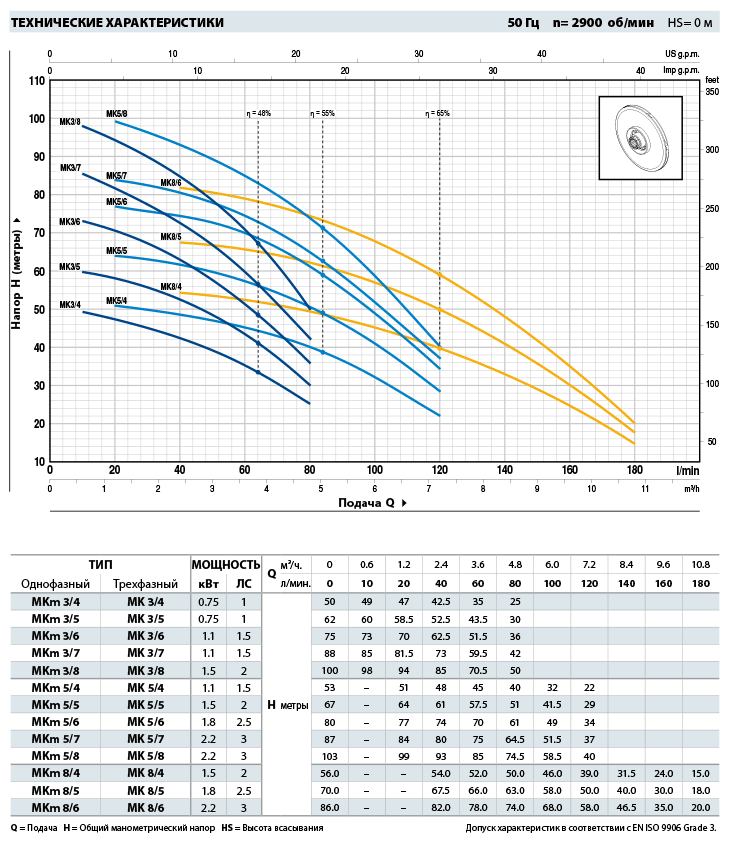 • Подача до 180 л/мин (10.8 м³/ч)