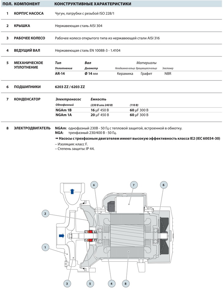 Конструктивное решение рабочего колеса, открытого типа, позволяет перемещать сильно загрязненные жидкости без опасности закупорки рабочего колеса. Благодаря этой конструктивной характеристике насосы серии NGA находят свое применение в промышленности, для перемещения вод из ка-
