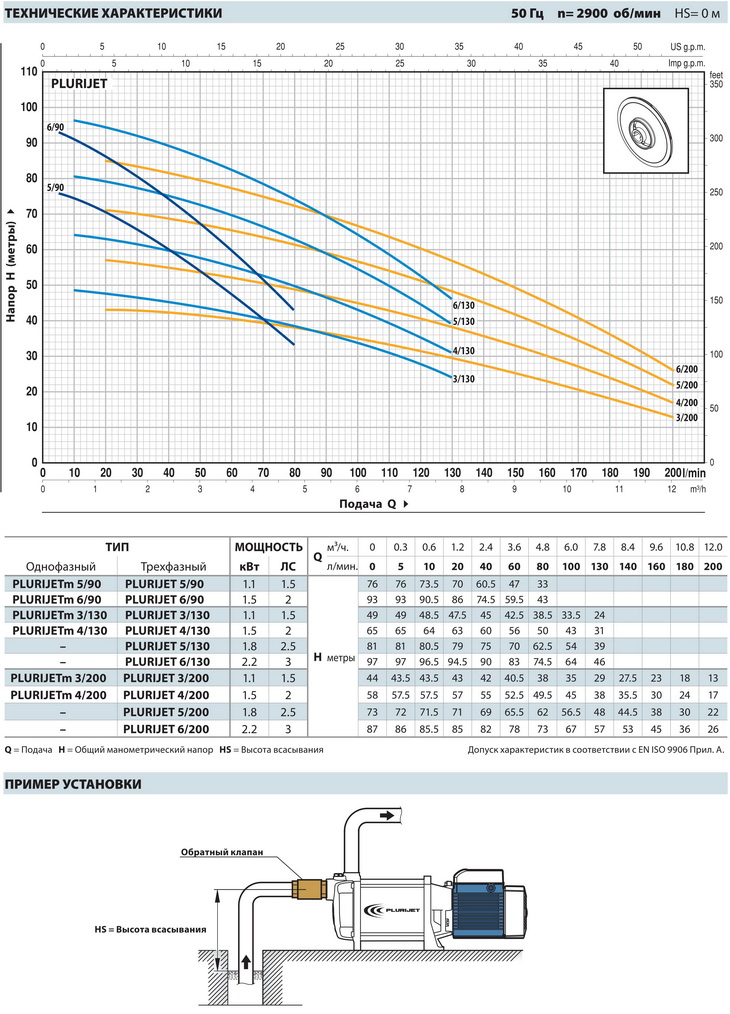 • Манометрическая высота всасывания до 9 м (HS)