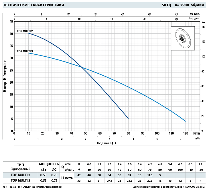 • Подача до 120 л/мин (7.2 м³/ч)