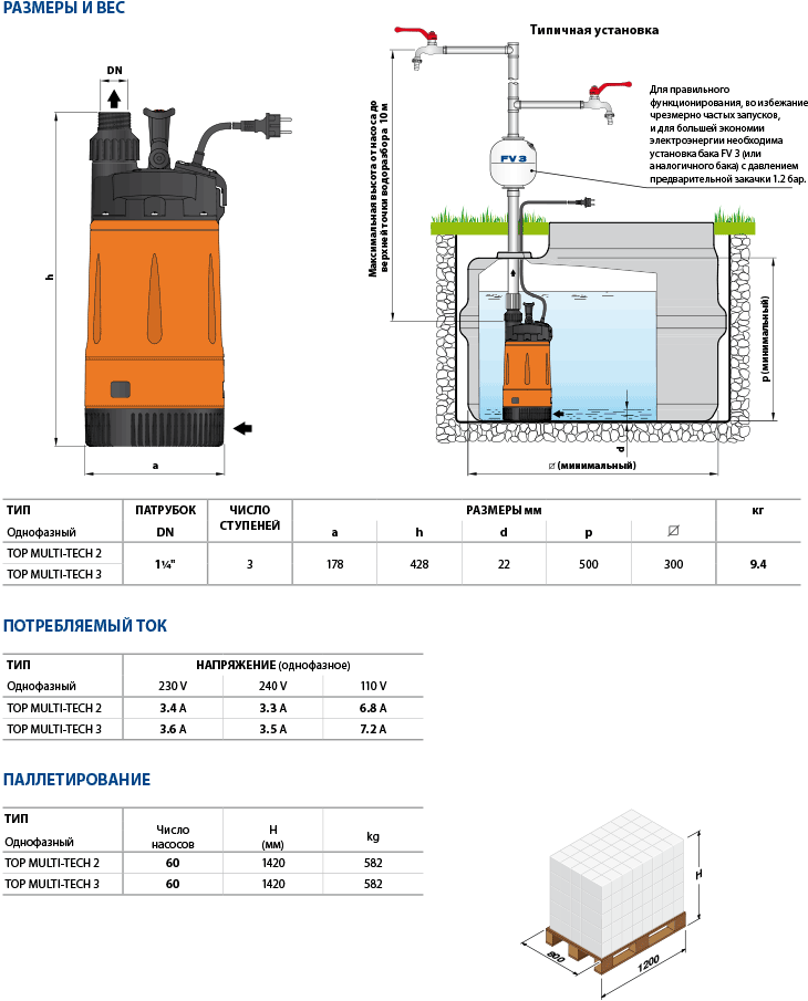 Погружные насосы Pedrollo TOP MULTI-TECH