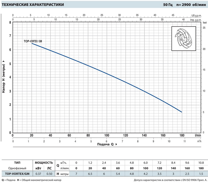 • Подача до 180 л/мин (10.8 м³/ч)