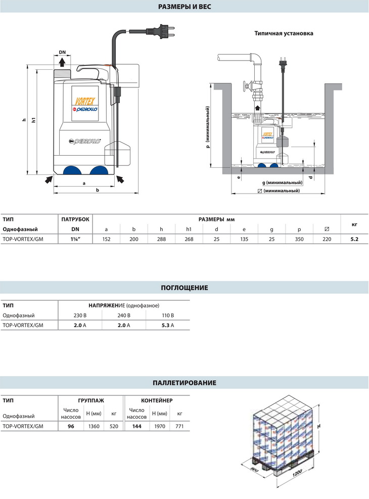 Погружные насосы Pedrollo TOP VORTEX-GM
