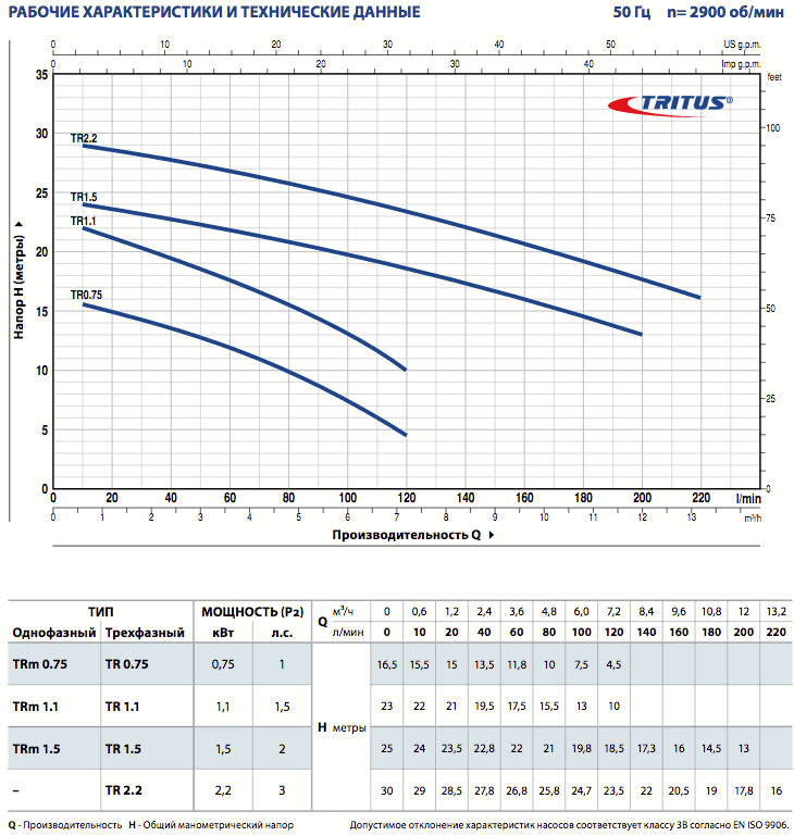 • Подача до 220 л/мин (13,2 м³/ч)