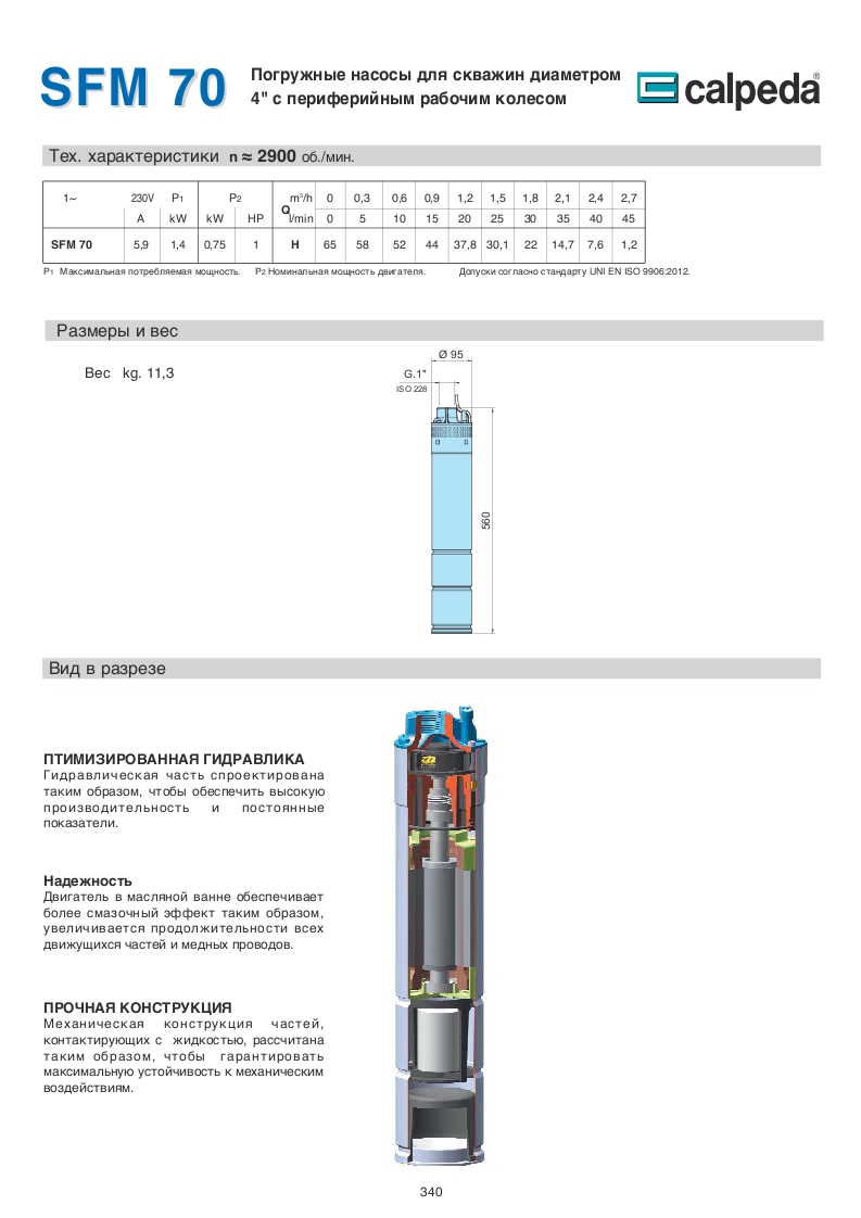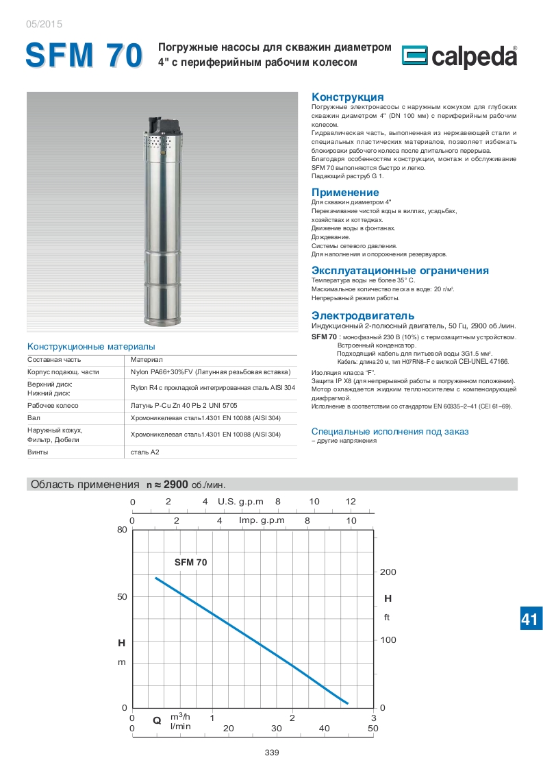 Эксплуатационные ограничения насосов CALPEDA SFM 70